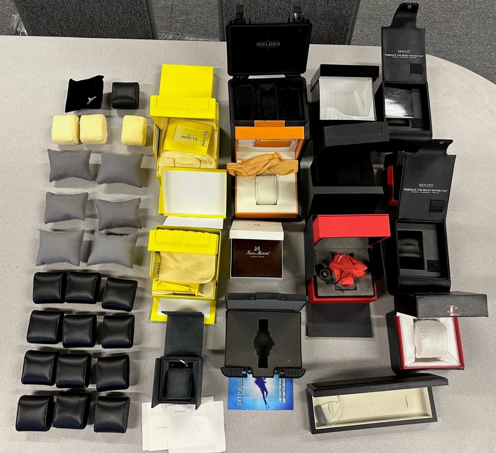 Assorted Watch Box Lot - Stuhring Invicta Welder Imperious Renato Deep Blue Jean