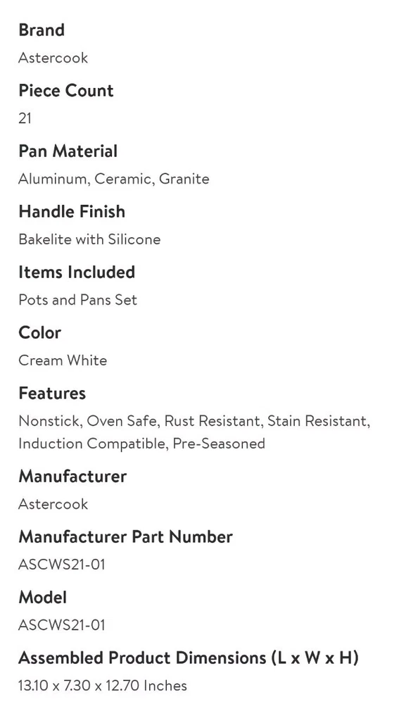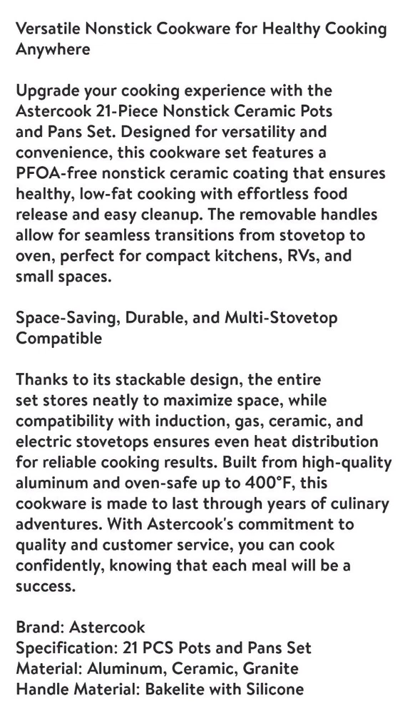 AsterCook 21 Piece Ceramic Non-stick Pots And Pans