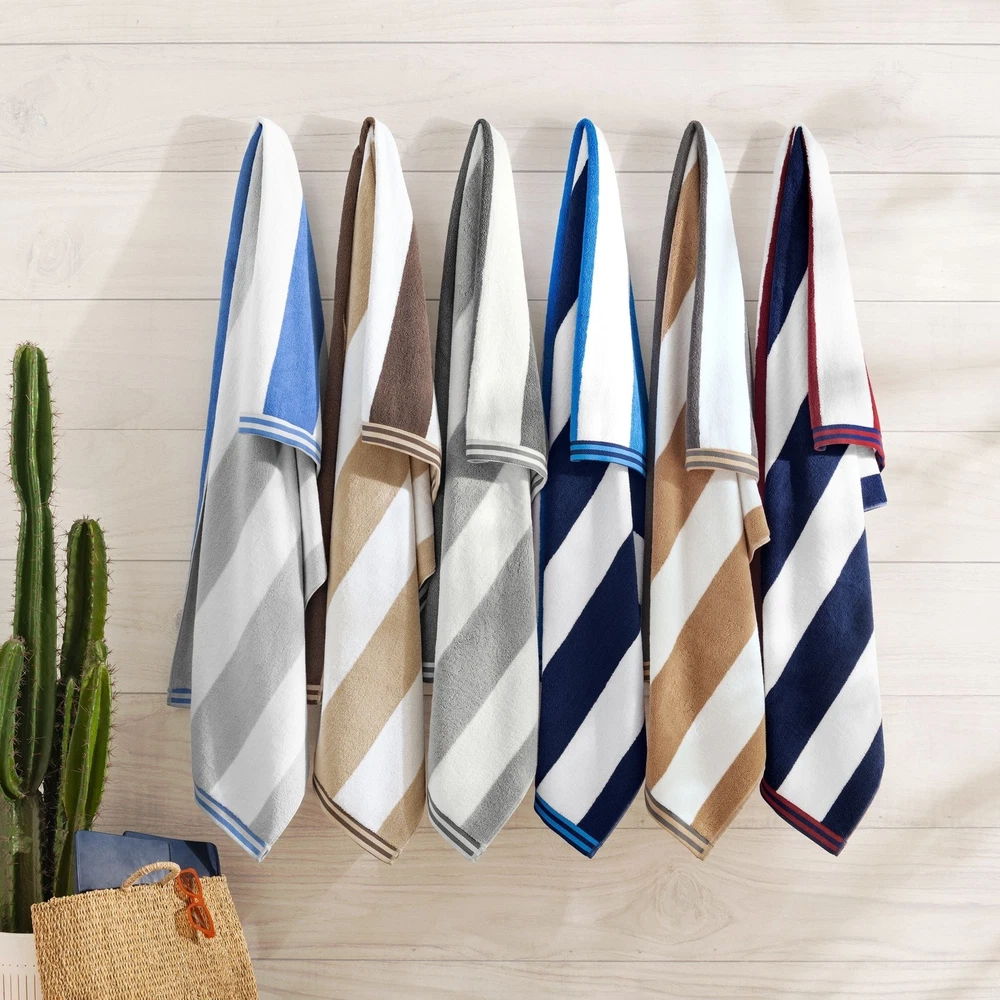 The unique Aston & Arden Reversible Beach Towel features a different color stripe on both sides of the towel. This plush, absorbent, oversized, soft ring spun cotton cabana towel gets its inspiration from the nautical travels of Aston & Arden's founder. Everything feels better when you wrap yourself in a soft extra-large beach towel with vibrant colored stripes. Our oversized beach towels are perfect for a lazy day at the pool, a trip to the beach, or to brighten up a bathroom. Machine Wash with like colors. Do not bleach. Tumble dry low. Care for your beach towels properly, and your extra-large beach towels will look new and fresh even after multiples washes.Features: Oversized Beach Towels Reversible towel with complementary or contrasting colors Unique striped end hem to give a chic Free Shipping Over $49.99* Details Aston & Arden Striped Reversible Oversized Beach Towel - 35x70 Product Description: The unique Aston & Arden Reversible Beach Towel features a different color stripe on both sides of the towel. This plush, absorbent, oversized, soft ring spun cotton cabana towel gets its inspiration from the nautical travels of Aston & Arden's founder. Everything feels better when you wrap yourself in a soft extra-large beach towel with vibrant colored stripes. Our oversized beach towels are perfect for a lazy day at the pool, a trip to the beach, or to brighten up a bathroom. Machine Wash with like colors. Do not bleach. Tumble dry low. Care for your beach towels properly, and your extra-large beach towels will look new and fresh even after multiples washes. Features: Oversized Beach Towels Reversible towel with complementary or contrasting colors Unique striped end hem to give a chic look Machine Washable Dimensions: Beach towel is 35 inches wide by 70 inches long