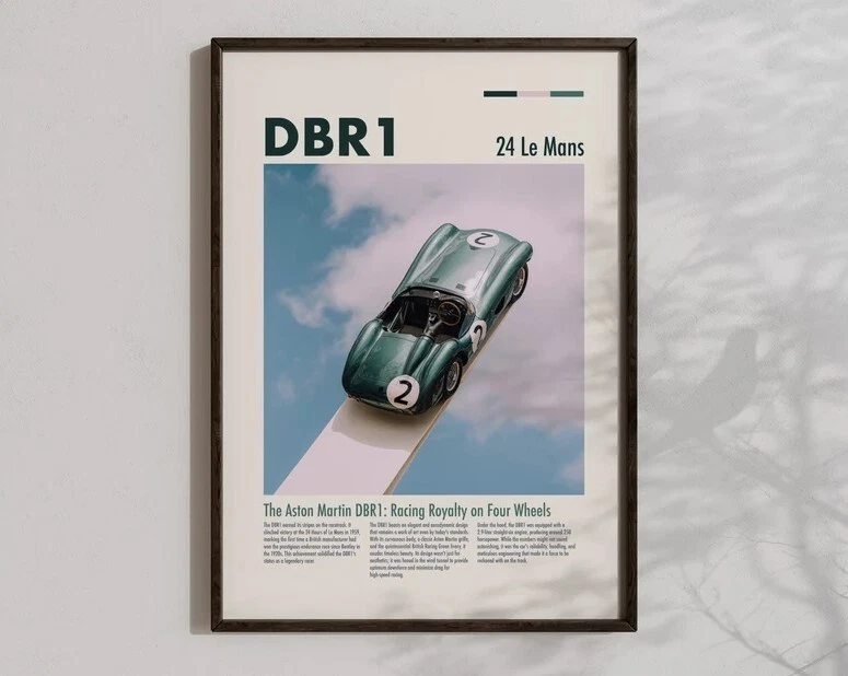 Aston Martin DBR1 Poster Race Car Wall Art 24 Hours Le Mans Art Decor Le Mans
