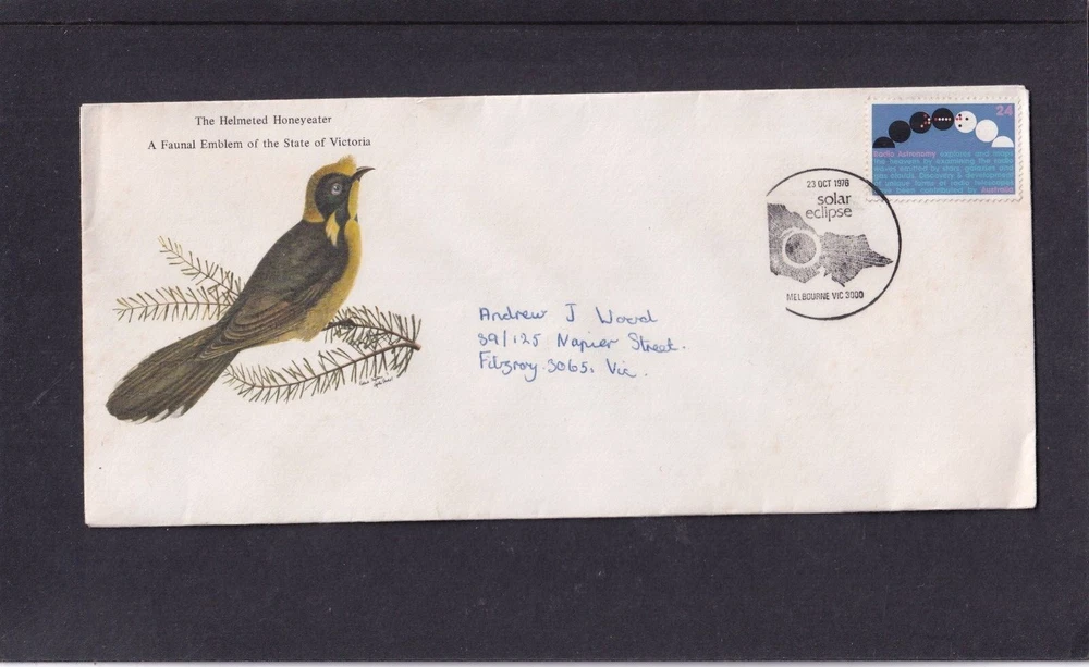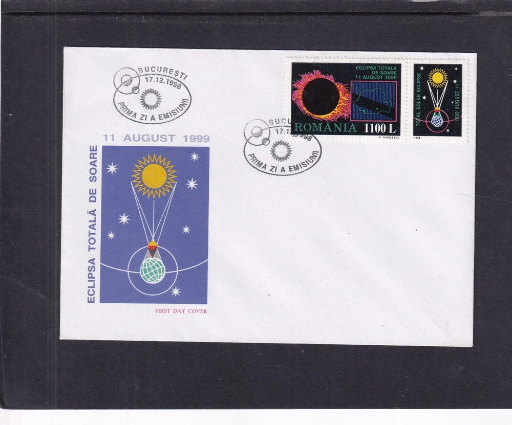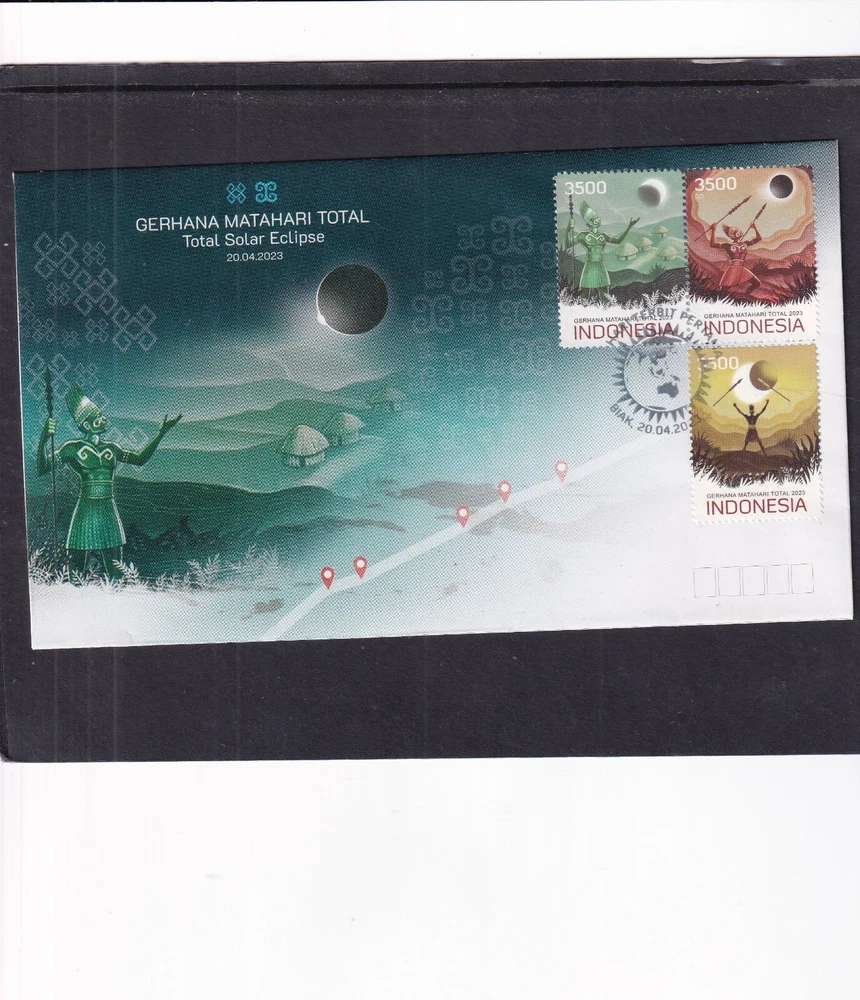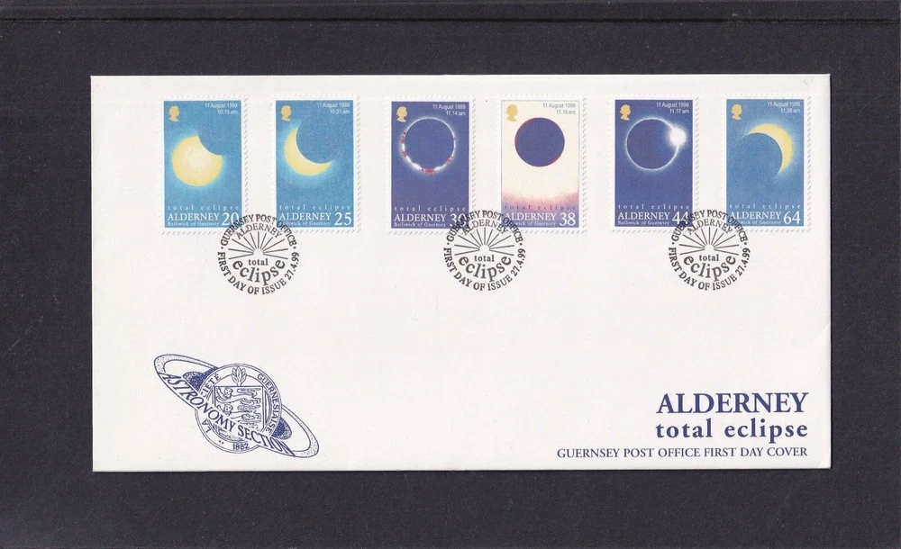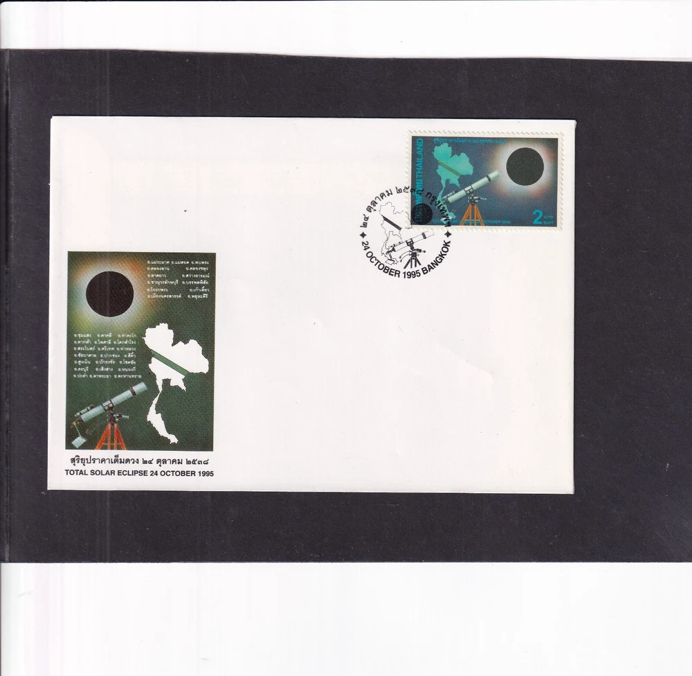 Astronomy Eclipse solar lunar FDC First Day Cover, unaddressed unless otherwise stated 1. Alderney 27.04.1999 Total Eclipse FDC 2. Alderney 27.04.1999 Total Eclipse Presentation Pack 3. Alderney 27.04.1999 Total Eclipse fine used 4, Ascension 28.10.2004 Lunar Eclipse stamps FDC 5, Ascension 28.10.2004 Lunar Eclipse stamp + label FDC 6. Australia 23.10.1976 Solar Eclipse Melbourne special pmk, hand written address (1) 7. Australia 23.10.1976 Solar Eclipse Melbourne special pmk, hand written address (2) 8. Australia 2022 Wallal Solar Eclipse pictorial pre=stamped envelope PSE mint unused 9. China 22.07.2009 Solar Eclipse commemorative envelope, special pmk 10. Romania 17.12.1998 Total Eclipse of Sun FDC 11. Romania 21.06.1999 Total Eclipse of the Sun FDC 12. South Africa 12.04.2002 Solar Eclipse MS FDC 13. Thailand 24.10.1995 Total Solar Eclipse FDC 14. Turkey 29.03.2006 Solar Eclipse FDC 15. Australia 11.04.2023 Solar Eclipse stamps FDC 16. Australia 11.04.2023 Solar Eclipse MS FDC 17. Indonesia 20.04.2023 Solar Eclipse FDC If you make multiple purchases please wait for invoice to ensure you are not over charged on postage