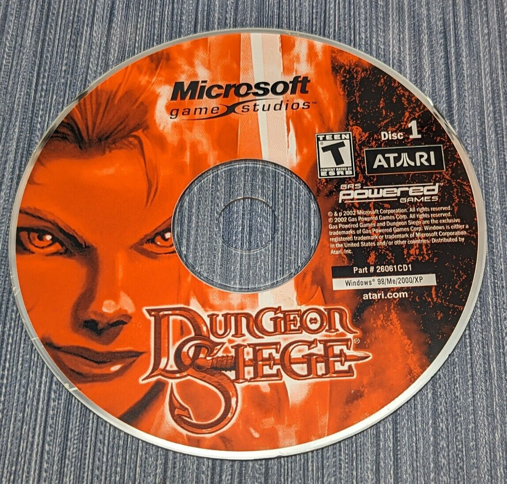 Atari / Microsoft Game Studios Dungeon Siege for PC 2004 RPG Chris Taylor UPC: 742725260610 Total Annihilation creator Chris Taylors' project entitled Dungeon Siege, an action fantasy role-playing game that combines elements of both role-playing and real-time strategy in this gigantic, continuous, fully 3D fantasy world on an adventure to discover and conquer what evil has befallen the land. Take on the evil with up to eight characters or mules to adventure with you and watching your back. Fight hordes of enemies in real-time, as you plan your next strategic move in an over-the-top battle view. Experience seamless gameplay as you journey from the highest mountain to the deepest dungeon without ever stopping to watch a loading screen.