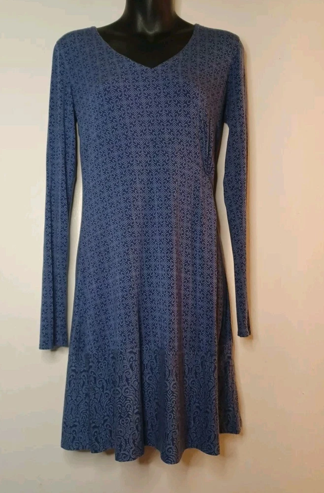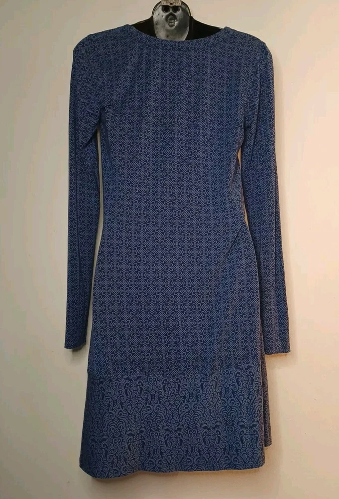 Fits more like a small medium. The size xs. This Athleta dress is a perfect addition to any wardrobe. The long sleeve, V-neck dress features a beautiful floral pattern that is sure to turn heads. The knee-length dress is made of a comfortable blend of spandex and modal materials, making it perfect for any occasion. The pullover closure and overall dress style add to its easy wearability, while the XS size ensures a perfect fit for any woman. The dress is perfect for any flower-themed event and can be dressed up or down depending on the occasion. Sold as is