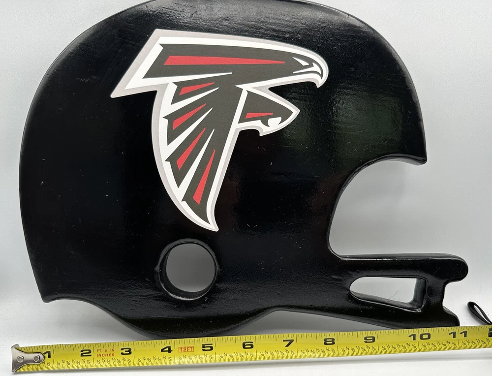 Enhance your sports memorabilia collection with this stunning Atlanta Falcons Football Helmet Wall Plaque made of high-quality wood. This unique piece is a must-have for any true fan of the Atlanta Falcons. The intricate design and attention to detail make it a perfect addition to any room in your home or office. Celebrate your love for the game and show off your team pride with this beautiful wall plaque. Whether you're a collector or simply looking for a decorative piece to spice up your space, this Atlanta Falcons Football Helmet Wall Plaque is a fantastic choice.