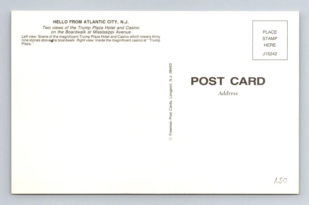 Atlantic City NJ-New Jersey, Trump Plaza Hotel and Casino, Vintage Postcard