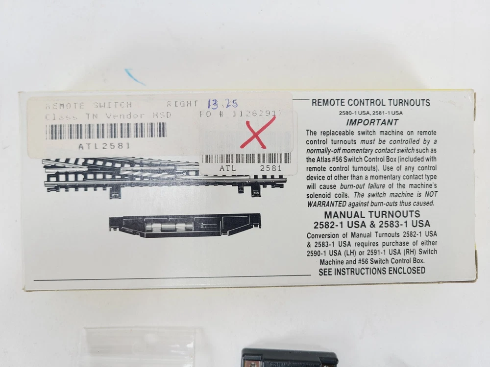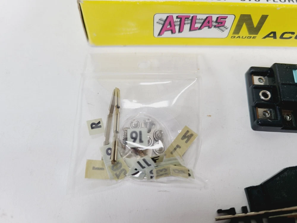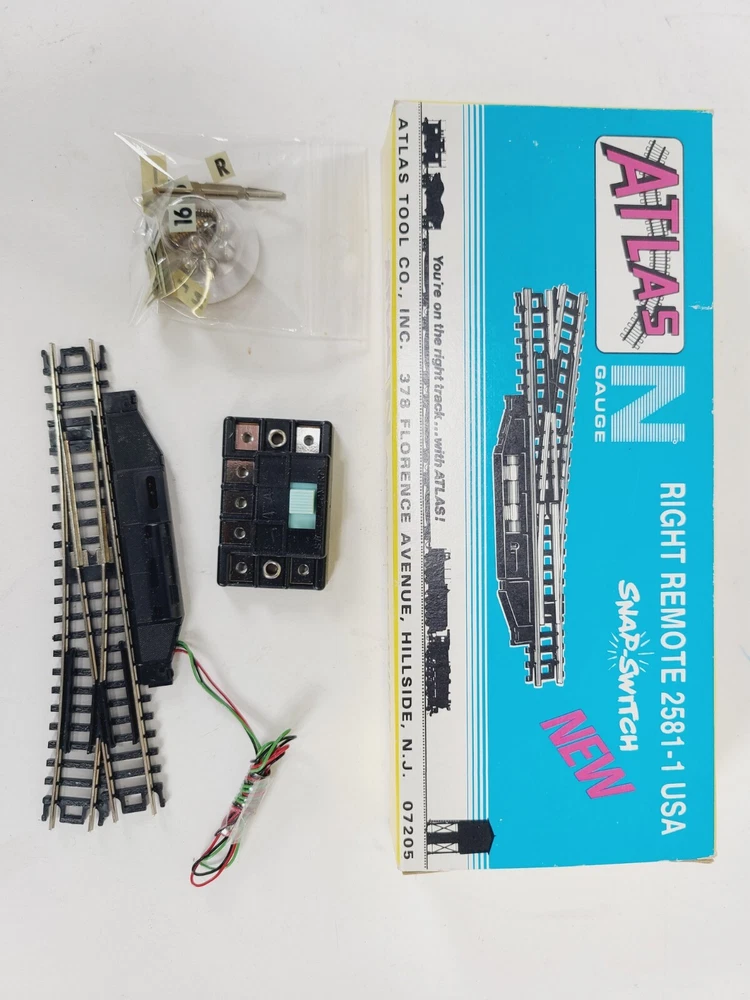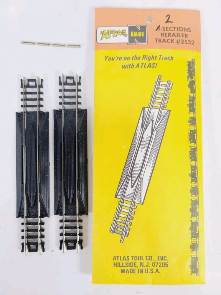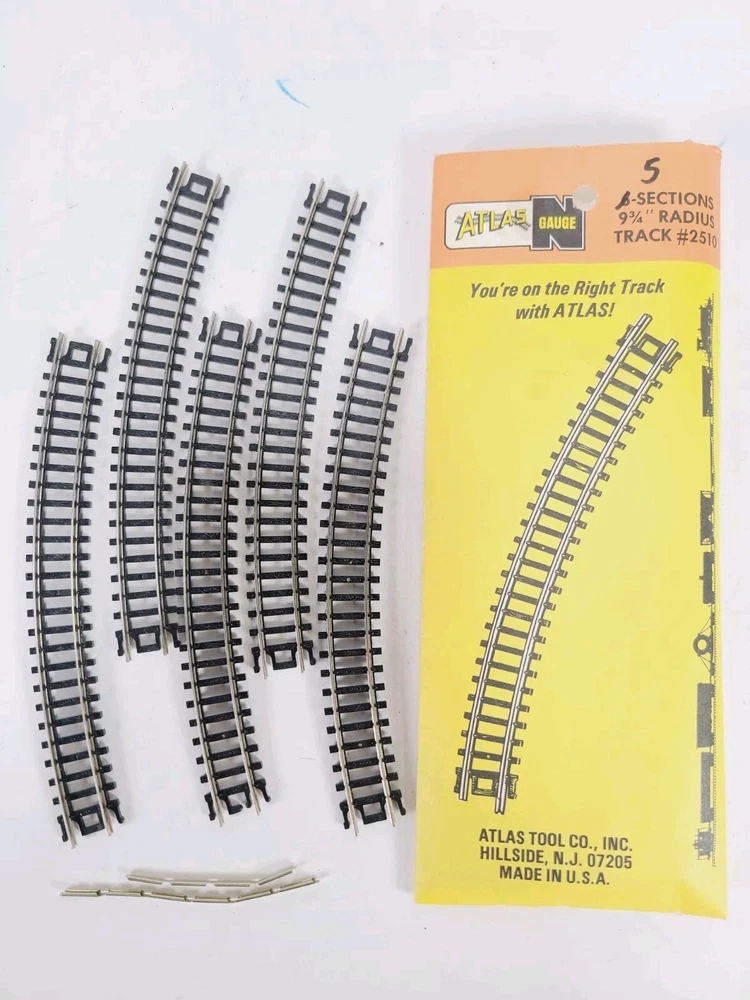 This lot includes: 3 Sections Atlas #2511 1/2 - 9.75" Radius 5 Sections Atlas #2510 9.75" Radius 5 Sections Atlas #2520 11" Radius 5 Sections Atlas #2521 1/2 - 11" Radius 5 Sections Atlas #2501 5" Straight 2 Sections Atlas #2532 Rerailer 1 Atlas Right Remote #2581-1 Switch - Unused but open box Thanks for looking & happy eBaying!