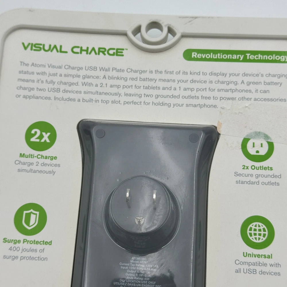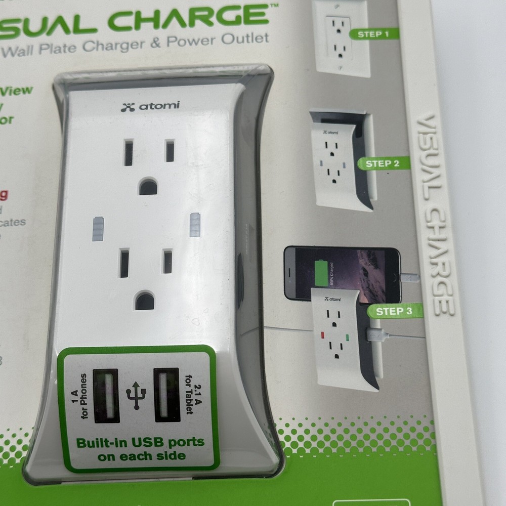 Atomi Visual Charge USB Wall Plate Charger with Power Outlet