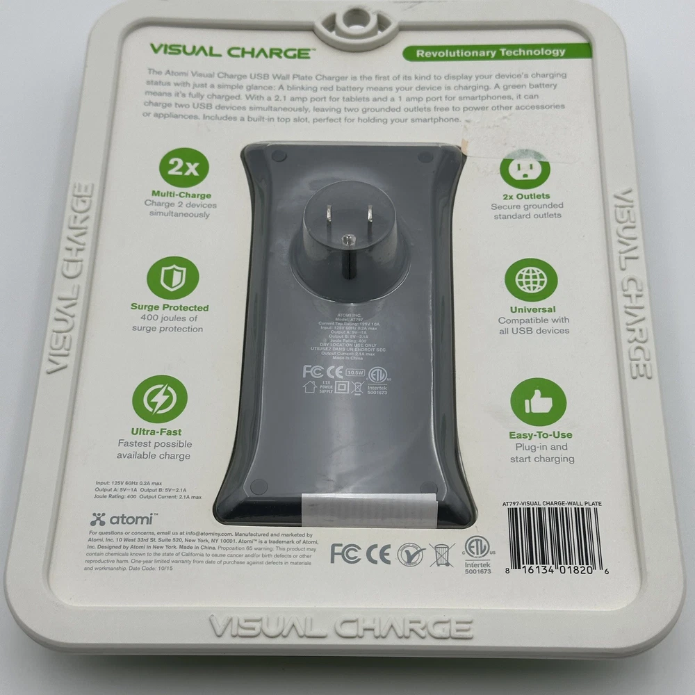 UPC:816134018206Model:AT797-VISUALType:Wall ChargerCountry/Region of Manufacture:ChinaCompatible Brand:Universalgtin13:816134018206MPN:AT797-VISUALBrand:AtomiNumber of Ports:2Compatible Model:Universal