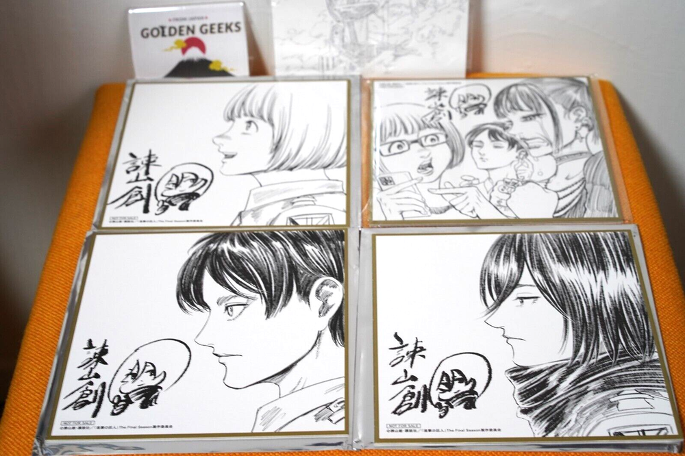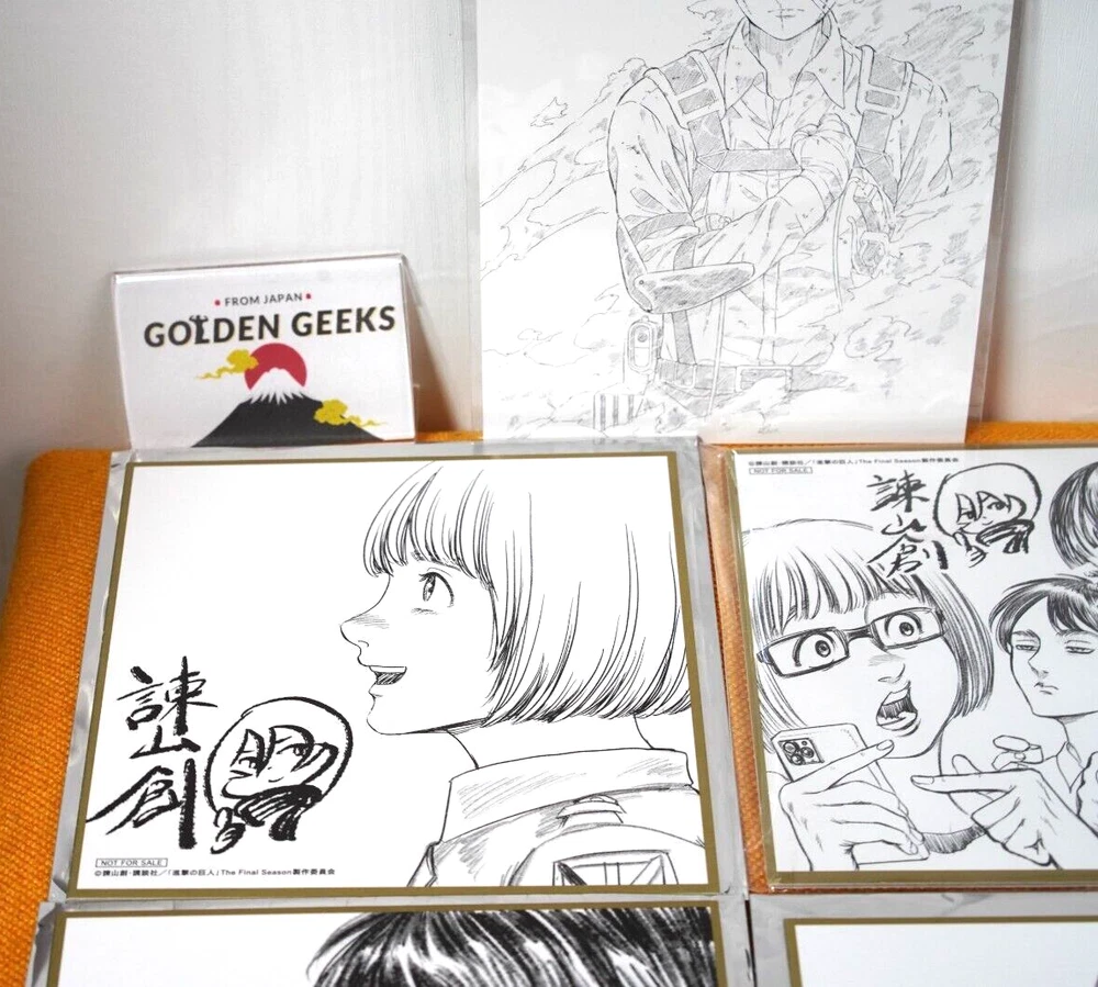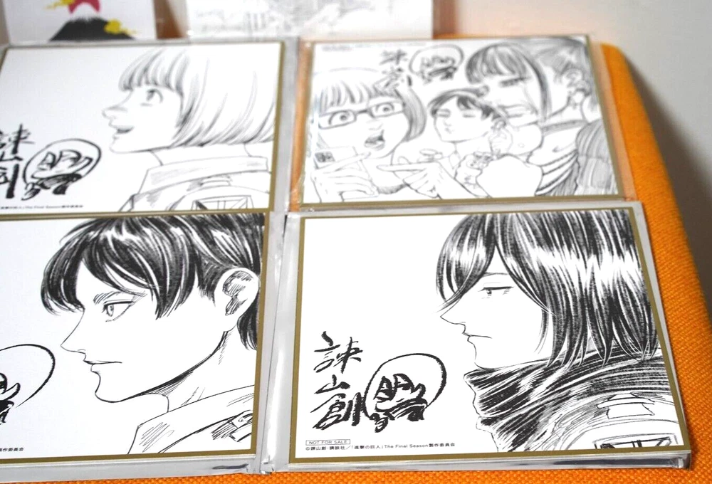 This set is a must-have for AOT fans! The shikishi boards and cards feature stunning artwork, capturing the essence of the final movie. The condition is excellent—just a tiny bend on one corner, barely noticeable. Shipping was fast and secure with tracking, so no worries there. Perfect addition to any collection!