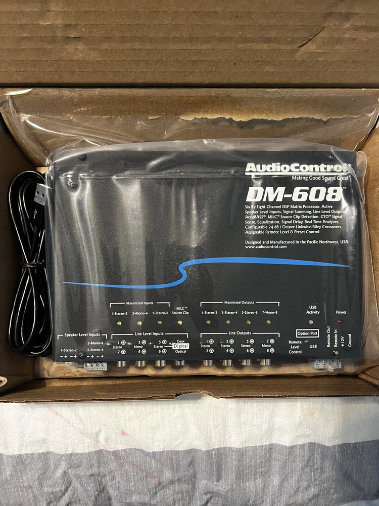 This AudioControl DM-608 Digital Matrix Processor is a powerful tool for enhancing your car audio experience. With 6 x 8 output matrix, this DSP allows for a customizable audio setup tailored to your specific vehicle. The DM-608 model is manufactured in China and is compatible with a variety of car audio systems. This Digital Matrix Processor is designed to improve sound quality and eliminate noise, resulting in a crystal-clear audio experience. The unit comes with a power supply and is ready to be installed in your car. Whether you're a car enthusiast or a professional audio installer, the AudioControl DM-608 is a must-have for any car audio setup.