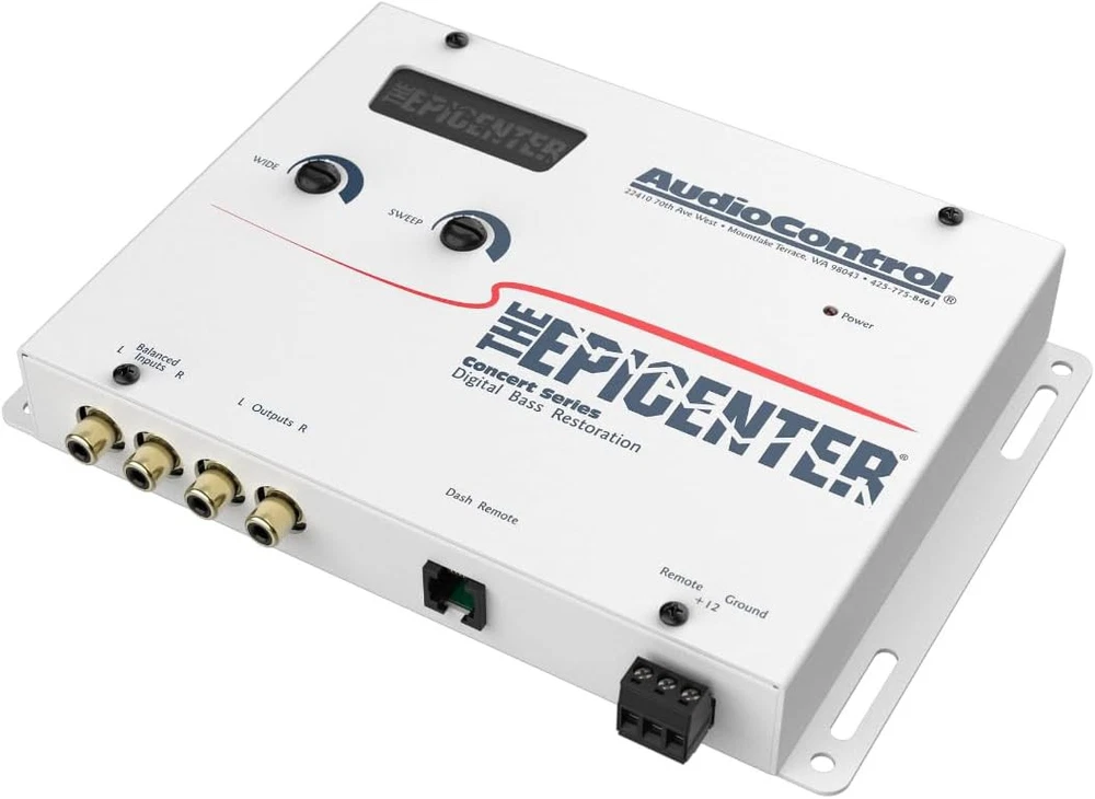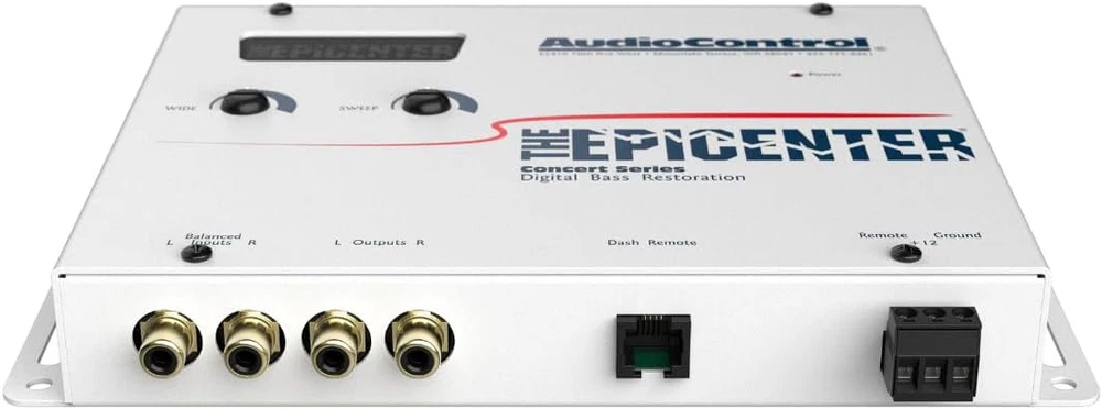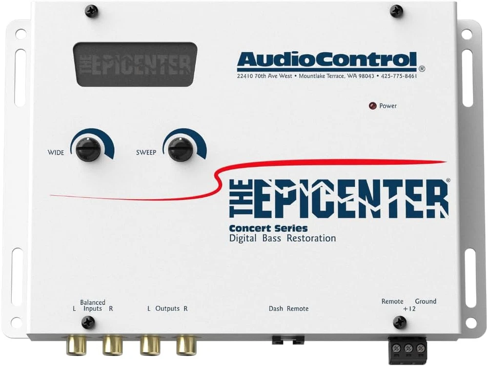 AudioControl The EPICENTER Bass Restoration Processor, Car Audio Bass Booster Brand AudioControl Item Weight 2.6 Pounds Output Wattage 9.5 Watts Number of Bands 2 Color White Features Bass Restoration: The Epicenter detects bass harmonics, then digitally recreates the underlying fundamental for the incredible punch and impact of live music. Para-Bass: Para-Bass is a single band, parametric equalizer for the bass output. The center frequency is continuously variable from 27 Hz to 63 Hz. The width of the band is also adjustable. Bass Maximization: The Bass Maximization circuit allows The Epicenter to maximize the bass output of any system while restraining destructive bursts, which can damage speakers. The 5.0 volt factory setting can be changed to 2.5, 7.5, or 10 volts if the amplifier and speakers can handle it. Subsonic Filter: The subsonic filter crossover point is 33 Hz; it's governed by a replaceable chip, so it can be changed to 20, 25, 30, 35, 40, or 45 Hz. Balanced Inputs: Using the balanced differential input circuit cancels noise picked up in the transmission line between the Epicenter and the source unit. The inputs can be set to balanced or unbalanced if needed. Remote: The bass restoration level is adjusted using the included wired remote. The remote is designed to be dash mounted within reach of the driver; it can be mounted under the dash with the supplied bracket, or the bracket can be removed, and the knob and LED can be custom mounted through the dash. Our Business 100% Customer Satisfaction We go above and beyond to ensure you receive the best level of service. Returns We want you to be happy with your purchase, however in the rare occasion that you are not, please let us know and we will contact you to arrange either a collection or a refund. Please CONTACT US before leaving any negative feedback and we will promptly sort out any issue with your order. 6226155