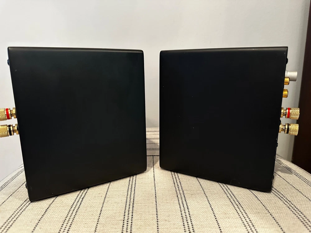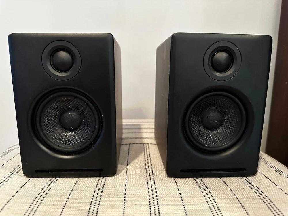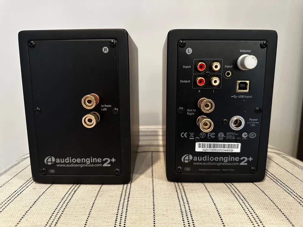 The Audioengine A2+ Premium Powered Speakers in Satin Black are a pair of wired rectangular speakers designed by Audioengine. These powered speakers are suitable for home audio use and come in a sleek black color. The model number is Audioengine A2+. These are lightly used speakers in good condition. These are NOT the Bluetooth version.