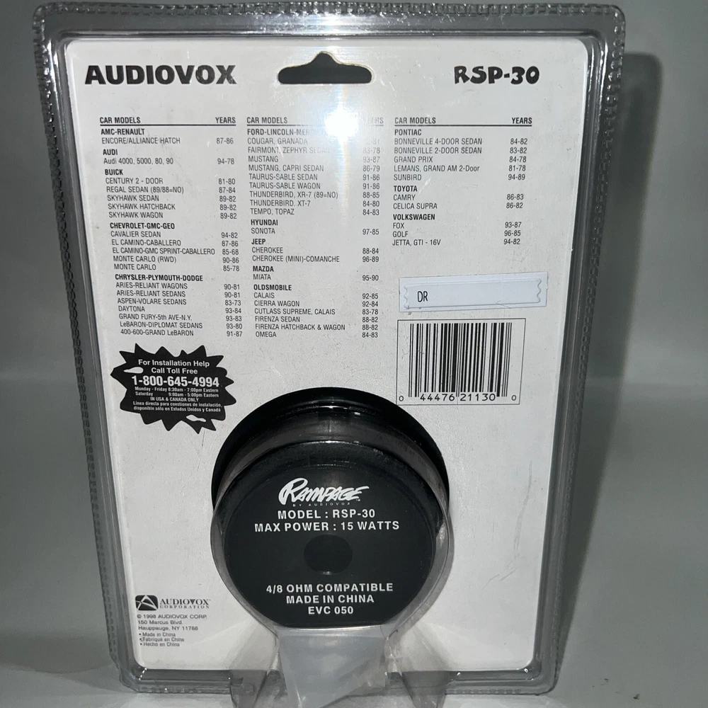 Upgrade your car's sound system with the Audiovox Rampage RSP-30 3-1/2" Original Factory Replacement Dashboard Speaker. This 2-way speaker is designed to provide clear and powerful audio, with a RMS power of 15W. The speaker size is 3.5in and is compatible with various models, including the Audiovox Rampage RSP-30. This speaker is the perfect replacement for your old or damaged speaker, ensuring that you can enjoy your favorite music and audiobooks without any interruptions. It is easy to install and comes with all the necessary hardware, making it a hassle-free upgrade for your car. Don't miss out on this opportunity to enhance your car's sound experience.