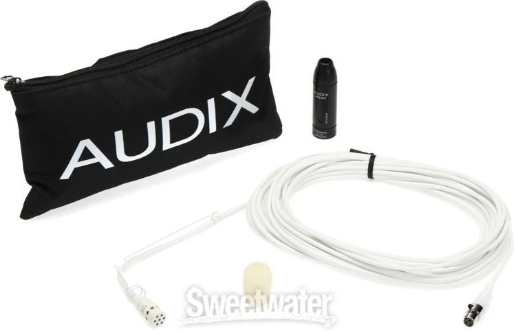 Exceptional Sound for Stage Productions Need top-quality sound that stays out of sight? Audix's ADX40W Miniature Hanging Microphone packs professional performance into a pint-sized mic, perfect for choirs, theatrical productions, and any stage setting needing stellar sound with discrete visuals. A cardioid polar pattern ensures this mic only captures the sounds you need, be it vocals or instruments — Sweetwater sound engineers concur that the ADX40W's 40Hz–20 kHz frequency range delivers a natural tone that works exceptionally well on a wide range of sound sources, a must when outfitting your venue with mics for all occasions. Its attached 30-foot shielded cable ensures the purest sound possible, made better with a handy external windscreen and wire hanger for easy positioning. Upgrade your stage sound to the big leagues with the Audix ADX40W Miniature Hanging Microphone!Audix ADX40W Miniature Hanging Microphone Features: Hanging condenser microphone with a low-profile design Ideal for choirs, theatrical Sweetwater is an Authorized Audix Dealer Genuine New Item Sweetwater's 2-year warranty Audix ADX40W Miniature Hanging Microphone - White Hanging Condenser Microphone with Cardioid Polar Pattern, 30' Shielded Cable, Windscreen, Wire Hanger, and In-line Phantom Power Adapter - White Exceptional Sound for Stage Productions Need top-quality sound that stays out of sight? Audix's ADX40W Miniature Hanging Microphone packs professional performance into a pint-sized mic, perfect for choirs, theatrical productions, and any stage setting needing stellar sound with discrete visuals. A cardioid polar pattern ensures this mic only captures the sounds you need, be it vocals or instruments — Sweetwater sound engineers concur that the ADX40W's 40Hz–20 kHz frequency range delivers a natural tone that works exceptionally well on a wide range of sound sources, a must when outfitting your venue with mics for all occasions. Its attached 30-foot shielded cable ensures the purest sound possible, made better with a handy external windscreen and wire hanger for easy positioning. Upgrade your stage sound to the big leagues with the Audix ADX40W Miniature Hanging Microphone! Audix ADX40W Miniature Hanging Microphone Features: Hanging condenser microphone with a low-profile design Ideal for choirs, theatrical productions, and any situation in need of stellar stage sound Cardioid polar pattern rejects unwanted background noise 40 Hz–20 kHz frequency range delivers professional results on a wide range of sound sources Includes 30-foot shielded cable, external windscreen, in-line phantom power adapter, and wire hanger Specification Detail Microphone Type Condenser Polar Pattern Hypercardioid Frequency Response 40Hz-20kHz Max SPL 130dB SPL Output Impedance 250 ohms Signal to Noise Ratio 65dB (A weighted) Self Noise 29dB (A weighted) Color White Cable Length 30' Connector XLR Power Source 9-52V phantom power Weight 4 oz RETURN INFORMATION We want you to be completely happy with your purchase from Sweetwater. If you are not satisfied with your product, you may return it for a refund of the purchase price within 30 days. If your purchase was eligible for Free Shipping, the shipping cost will be deducted from your credit or refund. Returns must be in the complete and original packaging with all accessories and complete documentation (Owner's Manual, warranty card, quick start guides, etc.), show no signs of wear or use, and include a Return Authorization number or be subject to a restocking fee.