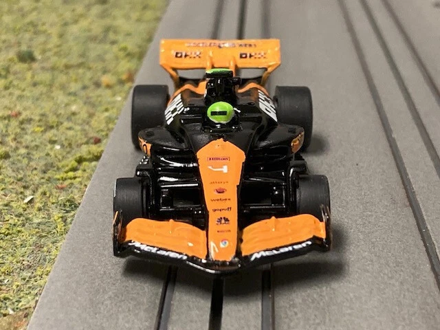 New Tomy Mega G+ F1 Body style painted in Lando Norris McLaren livery Body Fits on Mega G+ 1.7 long wheelbase chassis which is included. Chassis is included I painted over 300 bodies in 2023 on and off ebay including customer supplied bodies. If you are familiar with Flickr web site, search for colliganjim in people and you'll find 8 albums of pics of bodies I've done over the last 10 years Shipping cost is for first class mail with delivery confirmation in the lower 48 states. International bidders I ship to ebay int'l shipping facility and ebay then ships to your location