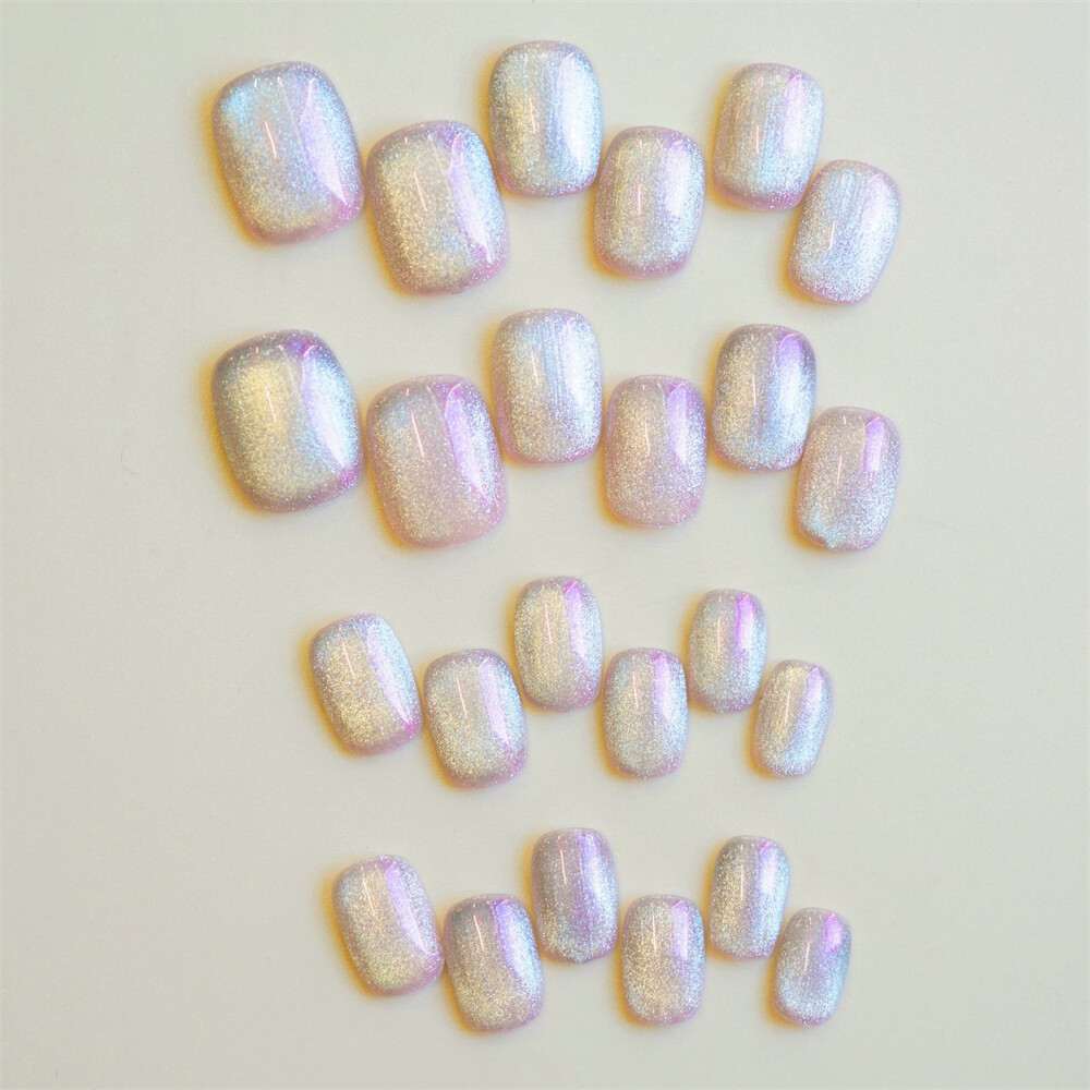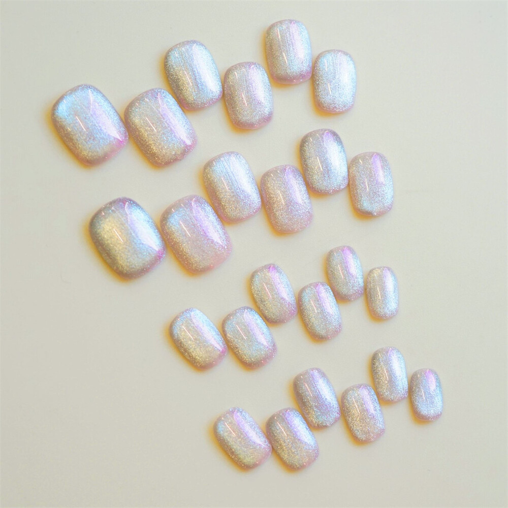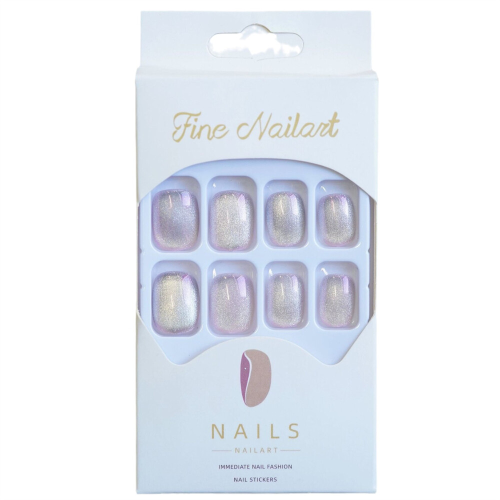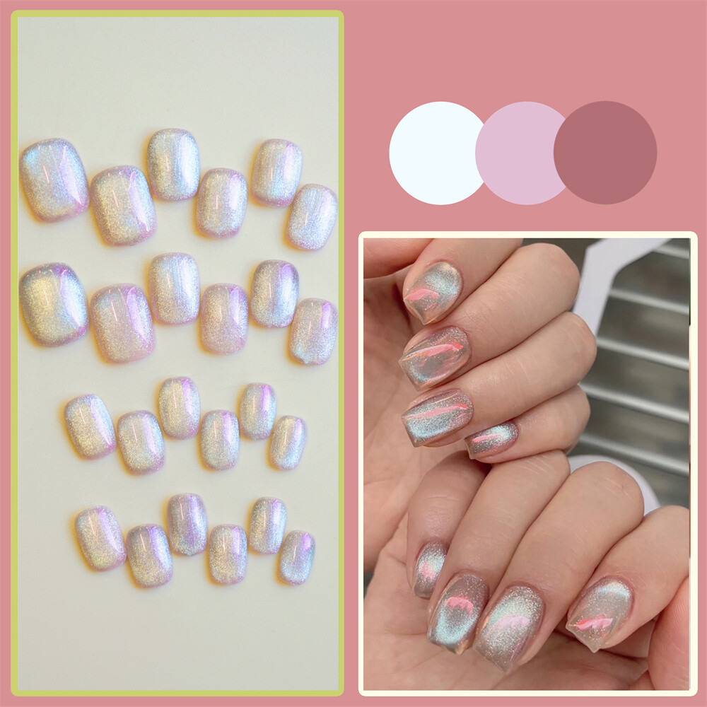 $ 2.11Dark Black Cat's Eye False Nail Short Square Press on Nails for Nail Art 24pcs