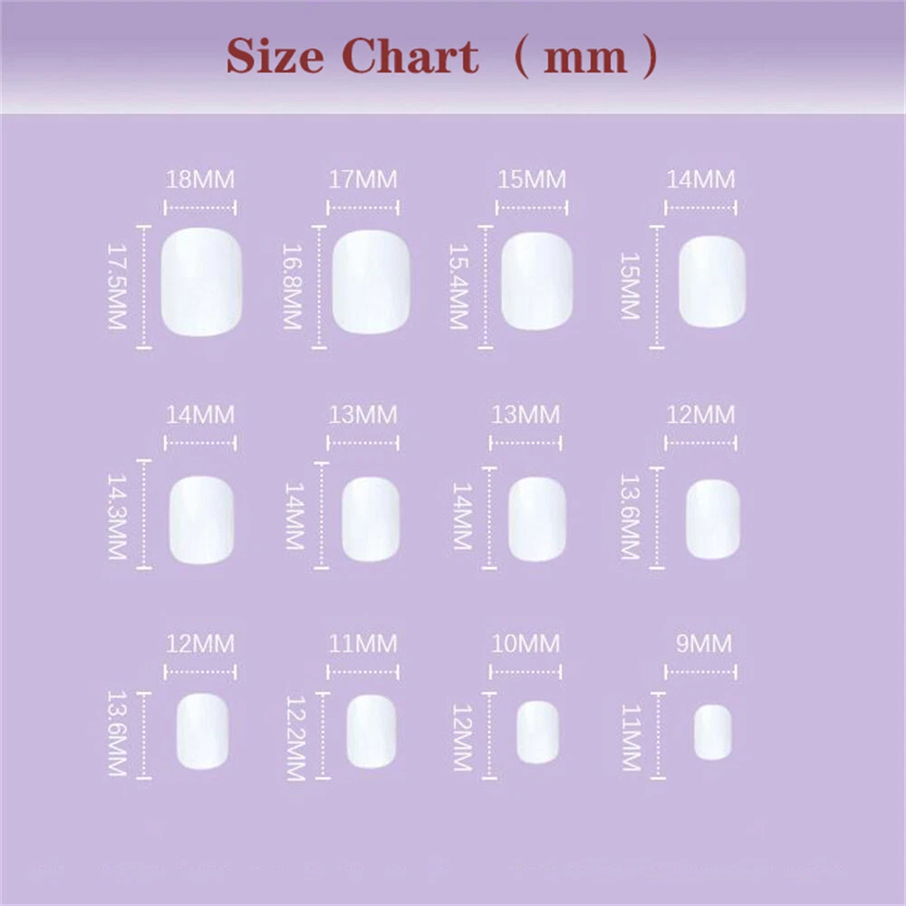 Type : False nails/Press on nails/Stick on nails/Nails Tips 100% New and high quality Color: Multicolored Material: ABS Plastic Package Includ ed: 2 4pcs False Nails with glue Feature: Full cover/Glue Included/Pre-designed/Durable/Detachable 1.This false nails are easy to file, paint and apply. It looks natural and nice holding the color without separating or streaking, making your tips magical and stylish. 2.Easy to use according to your option to wear them long or clip them short, easy to trim and file them to any length and shape you like. Mutiple application: The false nails are great for learners at all stages,suitable for nail salons and diy nail art at home,easy to remove,which are wonderful gifts for your wife,girlfriend,mother or sisters,as well as they are great fro parties,weddings,costume ball,Halloween,Christmas,etc. Shipping: Usually order will be shipped within 5-7 business days after payment finished. How to apply? 1. Trim the sides and cuticle area for an accurate fit. 2. Select the correct size of fake nails for each finger. 3. Apply our glue sticker on your nails. 4. Put on the fake nails. 5. Press on them for 10 seconds. 6. Art manicure finished. How to remove? 1. Soak in warm water for about 2 minutes and adhesive tabs can be removed easier. 2.Gently peel off the fake nails from the sides. Note: The nail piece is measured by hand in kind, there may be a little gap, hope for understanding! If there is any concern,please contact us again anytime.