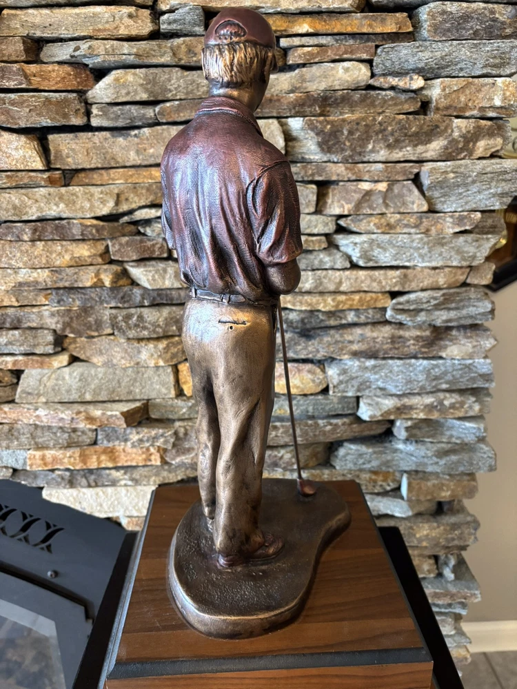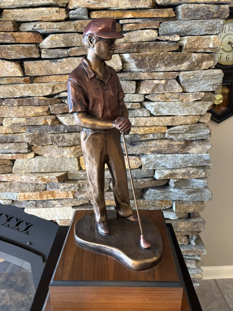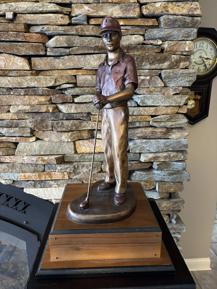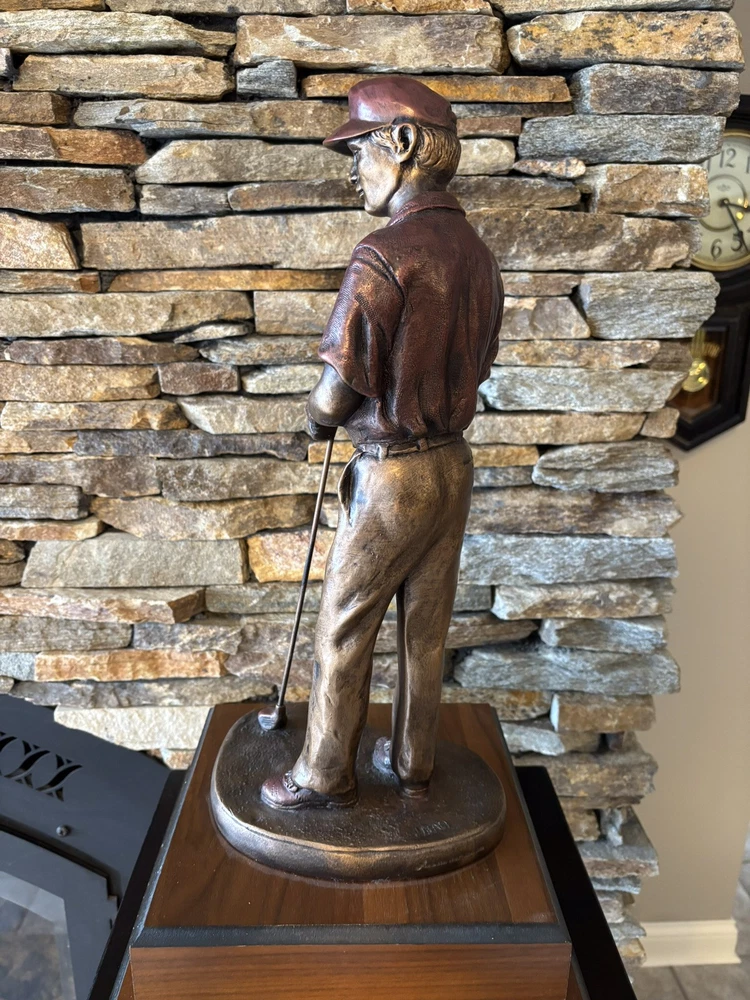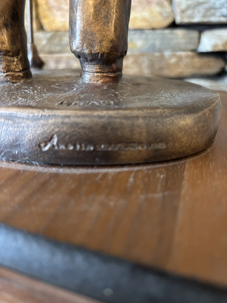 This was a trophy. Sculpture is mounted on a 3.5 inch tall, two tiered base that has a 9x9 stand and 11x11 base.