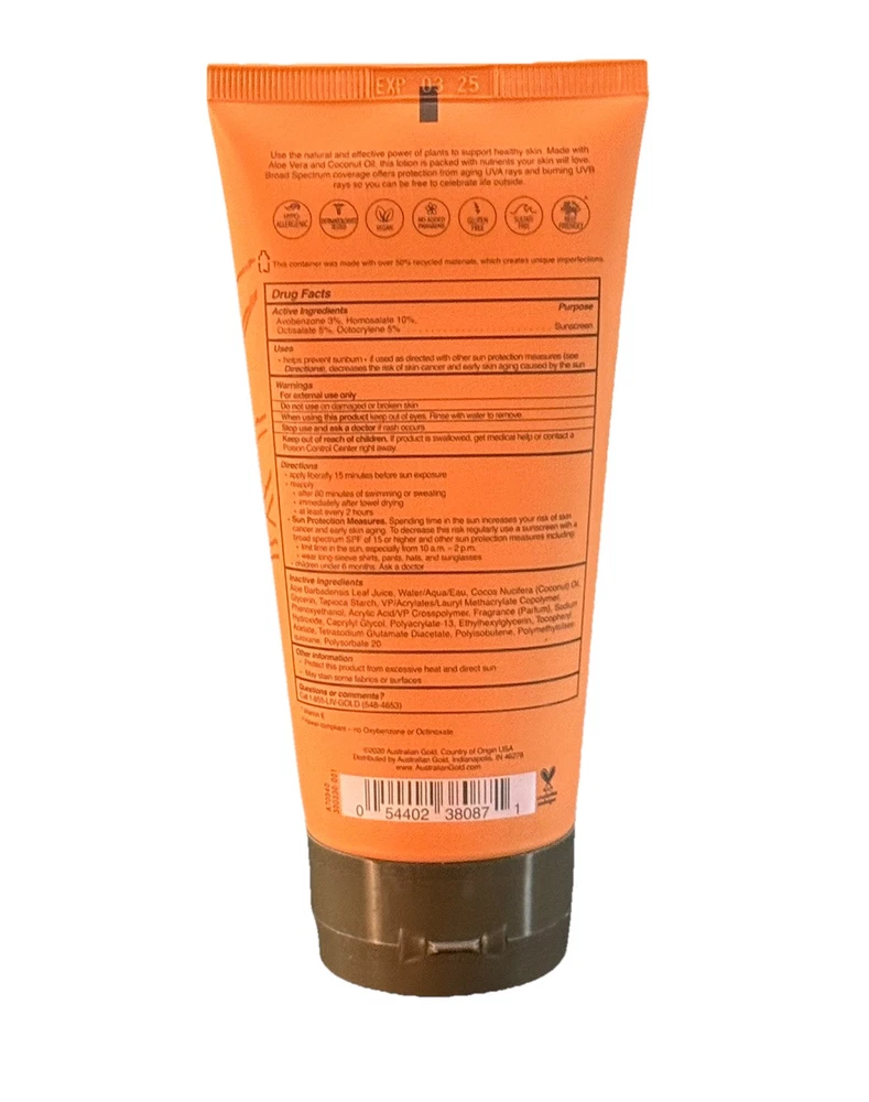 Australian Gold Plant Based Lotion Sunscreen Aloe Coconut SPF 50.