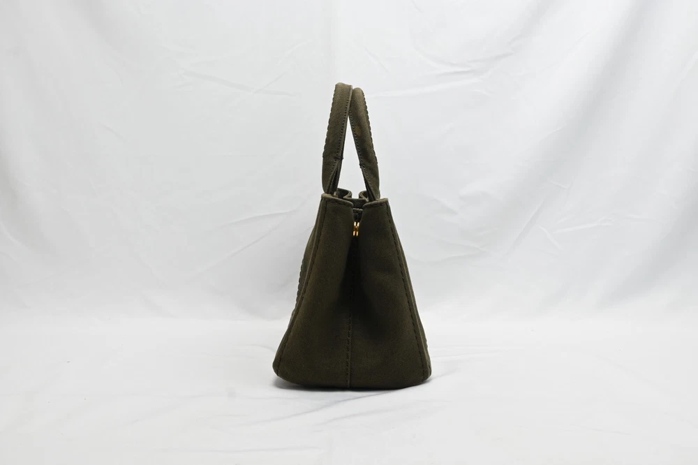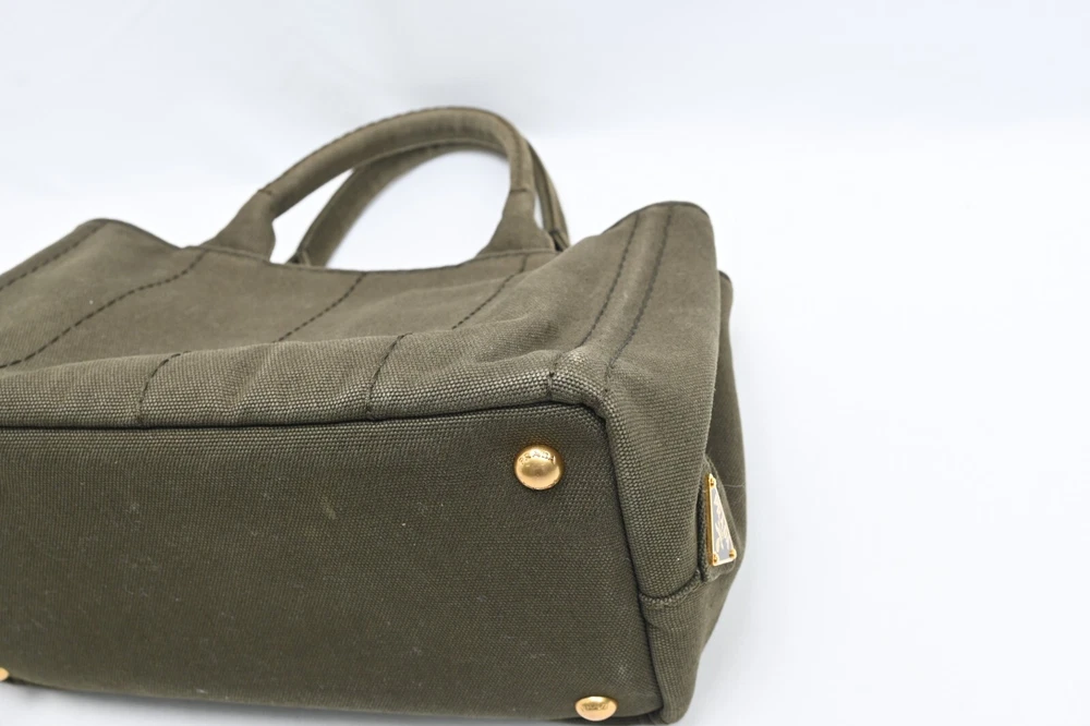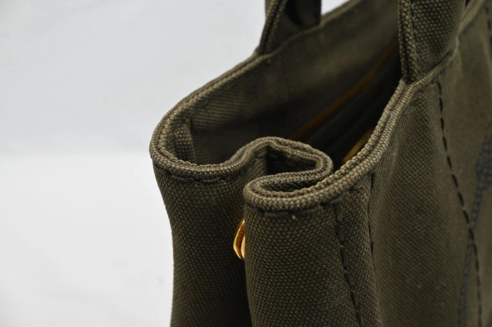 Auth PRADA Canapa BN2439 Khaki Canvas Tote Bag