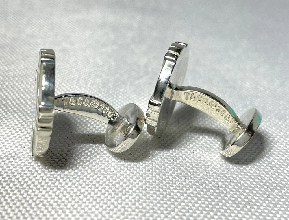 Diamond Color Grade: NA Occasion: NA Main Stone Color: NA Base Metal: NA Features: NA Theme: NA Shape: NA Type: Cufflinks Seller Warranty: NA Era: 2003 Main Stone Shape: NA Ethnic & Regional Style: NA Vintage: No Cut Grade: NA Antique: No Country of Origin: NA Main Stone: NA Metal Purity: 925 Material: Sterling Silver Brand: Tiffany & Co. Certification: NA Department: Men Style: NA Total Carat Weight: 7×2g Number of Gemstones: NA Secondary Stone: NA Diamond Clarity Grade: NA Color: Silver Number of Diamonds: NA Item Length: About 1.8 cm ( 0.709inch) Colored Diamond Intensity: NA Main Stone Treatment: NA Metal: Sterling Silver Main Stone Creation: NA Gemstone Clarity Grade: NA