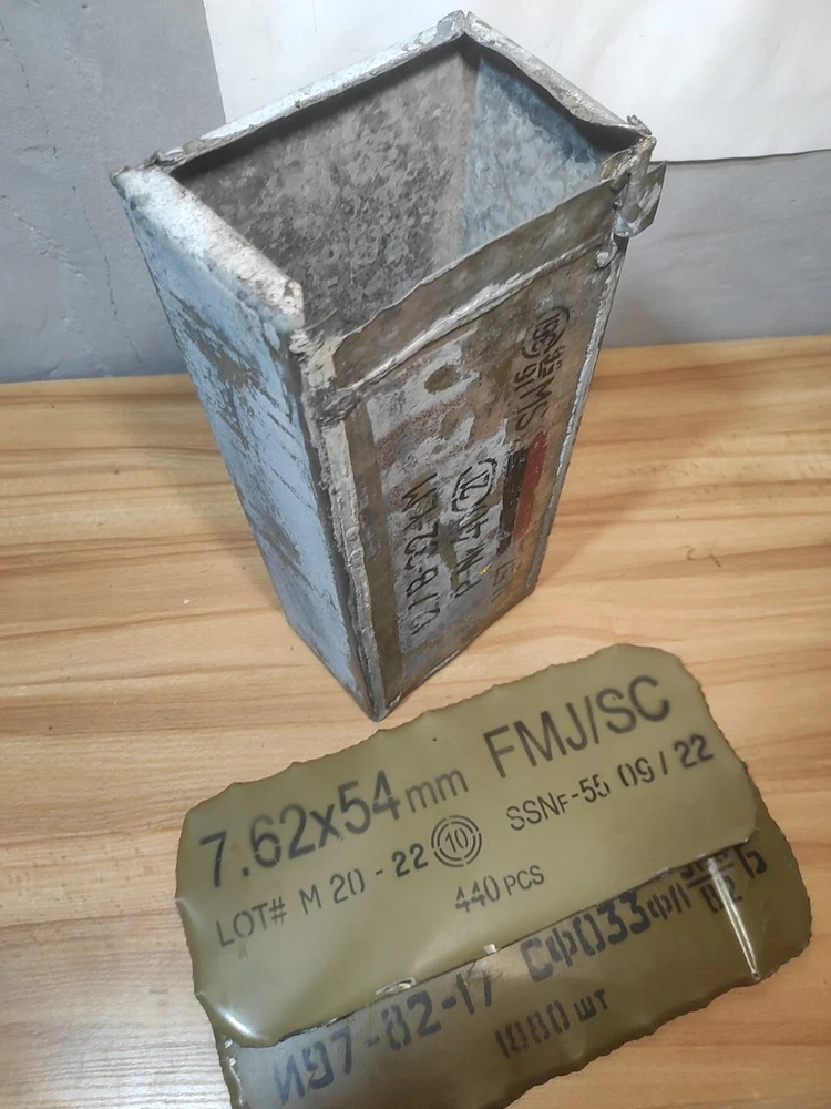 This listing includes two metal lids from military ammunition crates and one metal ammunition crate . These authentic relics were discovered in the forests of Sumy Oblast, Ukraine, and originate from real combat zones during the 2022-2024 period. They serve as unique artifacts for collectors, military history enthusiasts, or those looking for one-of-a-kind decor. Key Features: Genuine Combat Artifacts : Recovered from actual battlefield locations, making them historically significant. Materials : Heavy-duty military-grade metal lids and crate. Distinct Markings : Lid 1: Stamped 5.45 ПС ГС , indicating Soviet-era 5.45mm ammunition (1080 rounds originally). Lid 2: Marked 7.62x54mm FMJ/SC with a lot number (440 rounds originally). The crate itself carries a weathered look and military production codes. Condition : Well-worn with visible wear, dents, scratches, and patina — a true representation of combat use. Collectors : Perfect for those interested in modern military memorabilia or Eastern European combat artifacts. History Enthusiasts : A tangible piece of contemporary wartime history. Military Decor Fans : Makes for a bold, industrial-style addition to workshops, man caves, or themed displays. Artists/Props Creators : Ideal for creating post-apocalyptic or military-themed designs and setups. Important Notes: These items are sold as-is, showcasing authentic battle wear and signs of age. No ammunition or explosive components are included; these are empty, safe, and inert metal pieces. Review all photos carefully to confirm condition and authenticity. 📦 Shipping : Secure packaging for safe delivery. Worldwide shipping is available. 👉 Don’t miss this chance to own a unique set of combat-zone artifacts! Perfect for collections, displays, or creative projects.