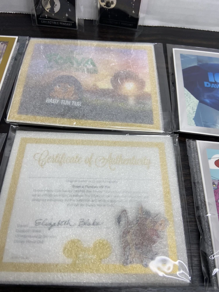 Immerse yourself in the magic of Disney with this exclusive lot of 6 Disney Movie Club (DMC) VIP pins, each accompanied by a charming pendant featuring beloved characters Groot and Buzz Lightyear. These pins are a must-have for collectors and fans, showcasing an array of vibrant designs inspired by the enchanting world of Frozen and the creativity of Pixar. Each piece in this collection stands out with its unique theme and high-quality craftsmanship, emblematic of the contemporary Disney era (1968-Now). Though the country of origin remains a mystery, the allure of these pins is undeniable, making them a prized addition to any Disneyana enthusiast's treasury.
