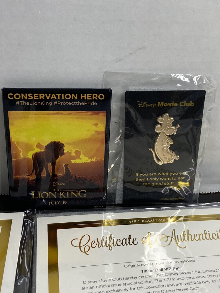 Immerse yourself in the magic of Disney with this exclusive lot of 6 Disney Movie Club (DMC) VIP pins, each accompanied by a charming pendant featuring beloved characters Groot and Buzz Lightyear. These pins are a must-have for collectors and fans, showcasing an array of vibrant designs inspired by the enchanting world of Frozen and the creativity of Pixar. Each piece in this collection stands out with its unique theme and high-quality craftsmanship, emblematic of the contemporary Disney era (1968-Now). Though the country of origin remains a mystery, the allure of these pins is undeniable, making them a prized addition to any Disneyana enthusiast's treasury.