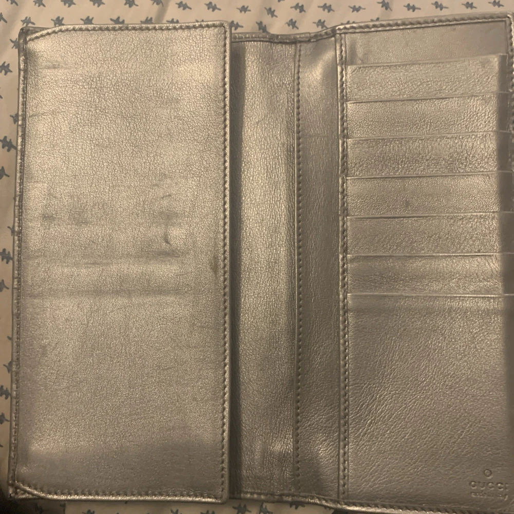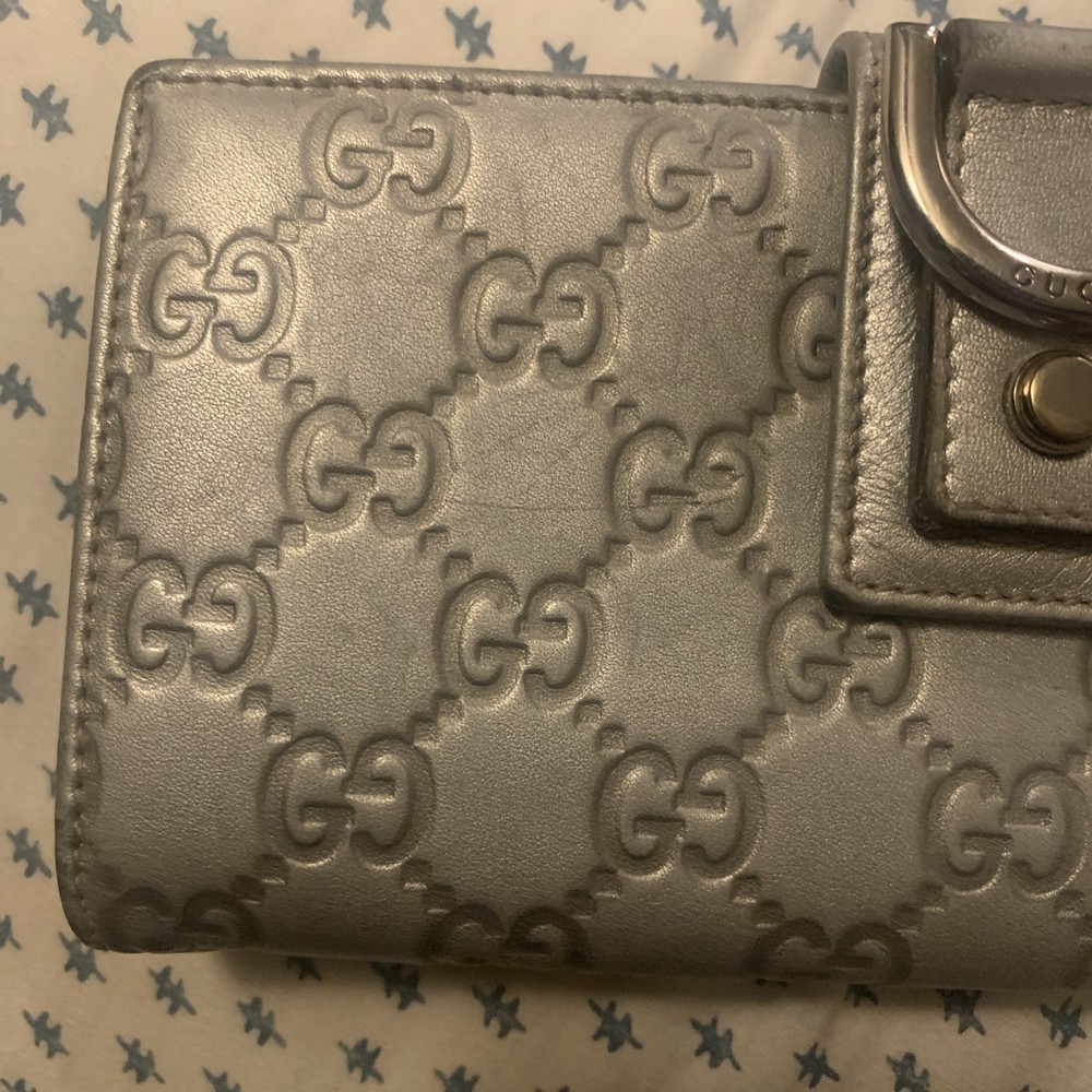 The Authentic GUCCI GG Abbey Canvas Leather Bifold Long Wallet is a stylish and high-quality accessory suitable for both men and women. Made in Italy, this wallet features the iconic Gucci brand logo on a brown canvas fabric, giving it a luxurious and timeless appeal. The bifold design allows for easy organization of your cards, cash, and other essentials, making it a practical and sophisticated choice for daily use.