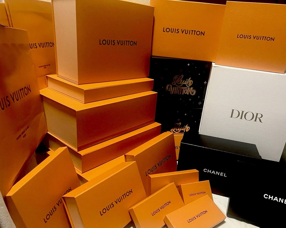 This authentic Louis Vuitton gift box is a must for any fashion lover. Its stylish design and magnetic enclosure. The gift box is 1.5-14-7.5 insize, made of high-quality paper and printed with the iconic Louis Vuitton monogram, perfect for any special occasion and suitable for all kinds of items. Whether you want to pack a designer purse, small or large silk scarves, gloves or other luxury items, this box is sure to impress you, it comes with a shopping tote and ribbon, adding to the high-class decorative effect of the gift. There are also several sizes of boxes 🎁, tell me the size you need, I will help find the perfect size of the gift box, thank you Gift a Chanel shoe box.