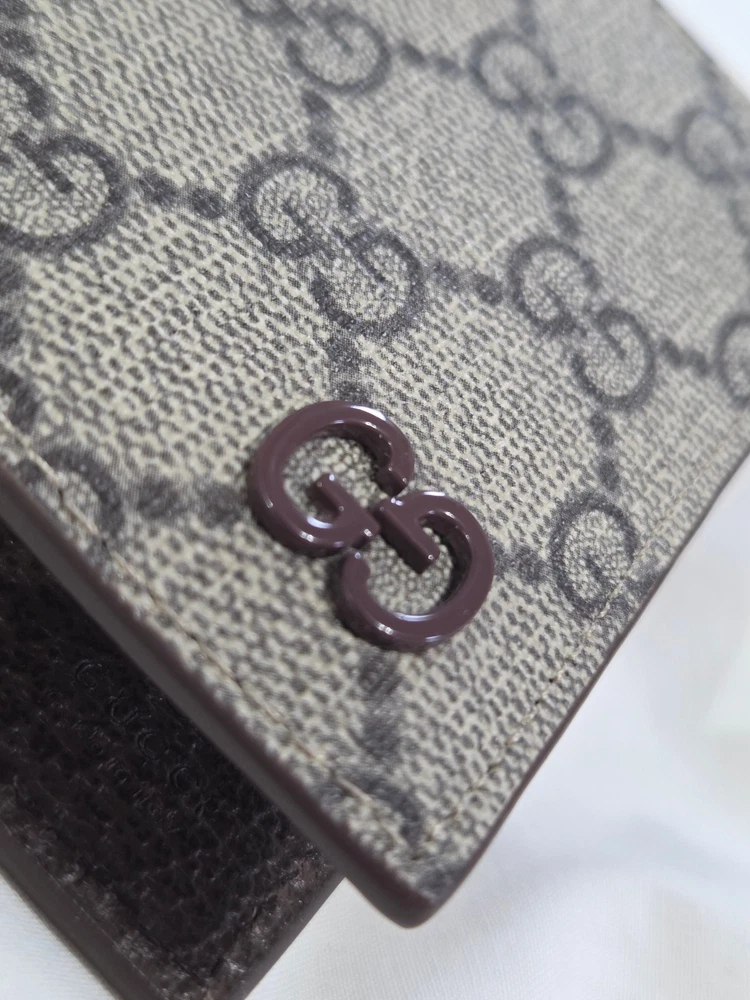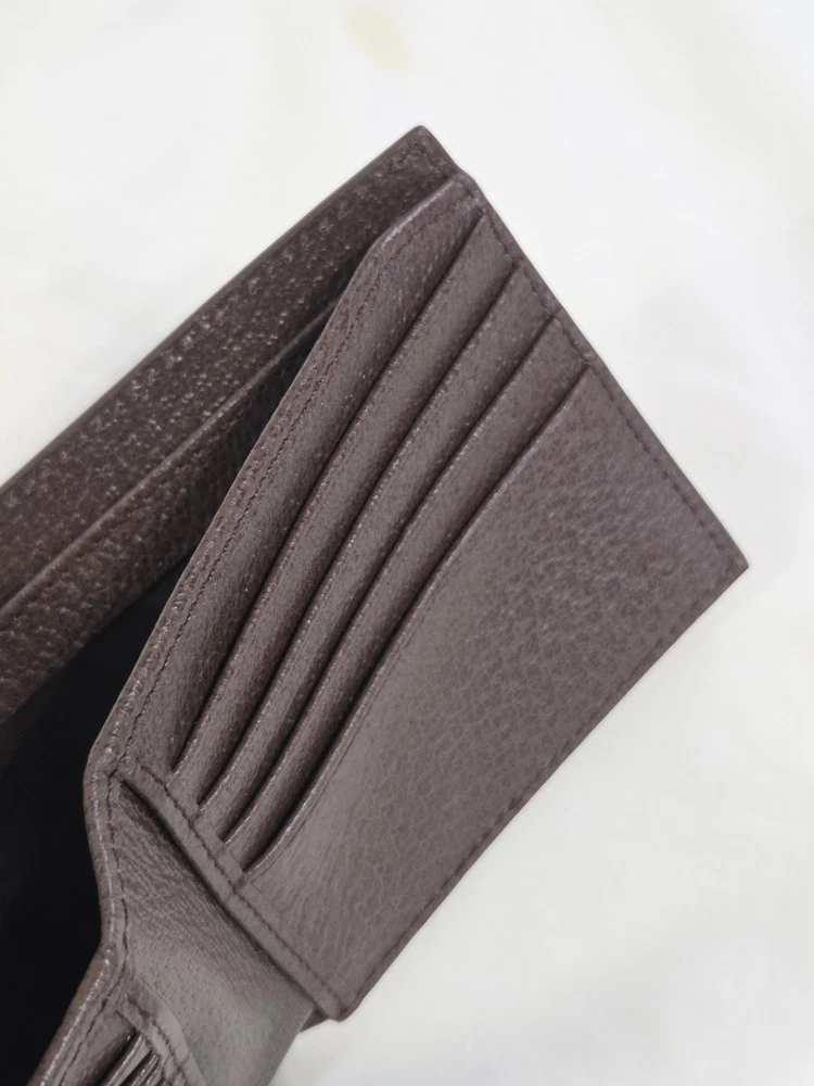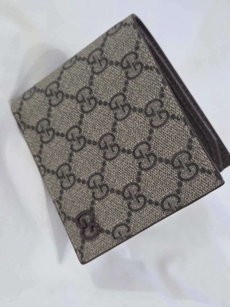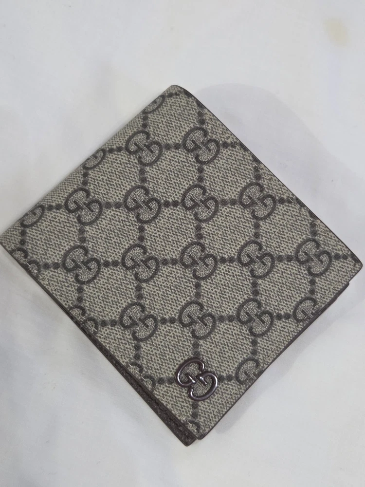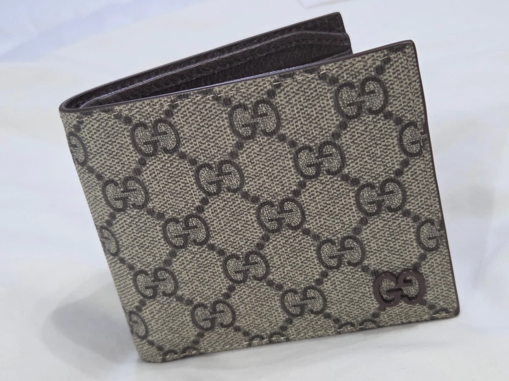 Get it Fast! Same Day Shipping! Last One! Authentic Mens Gucci Brown/Tan Monogram Canvas Bifold Wallet New Mint Condition - Exact Item in Pictures Eight card slots and two bill compartments Open: 8.3"W x 3.5"H Closed: 4.3"W x 3.5"H Made in Italy Brass hardware Includes Box & Dust Bag Ships Priority Mail Get it Fast!