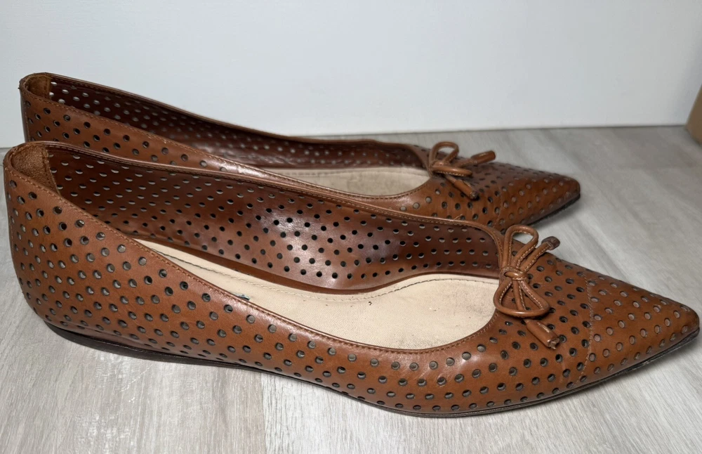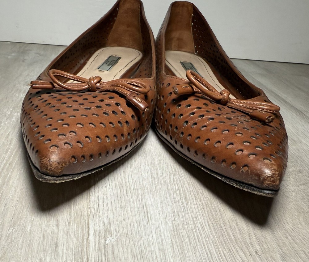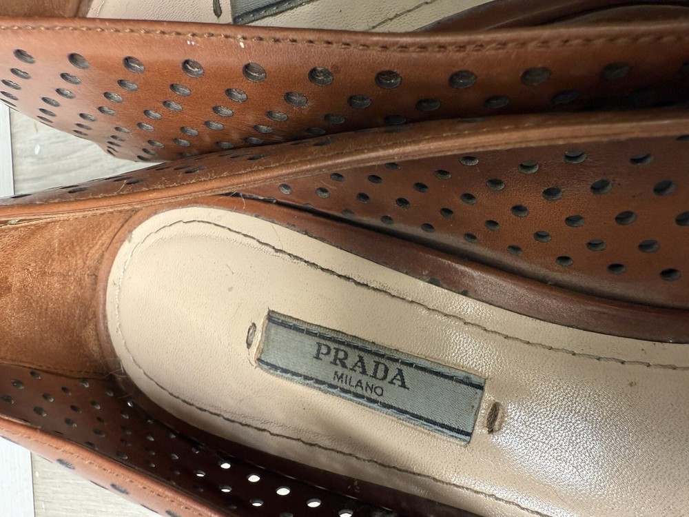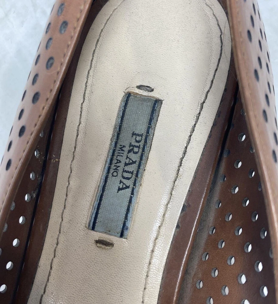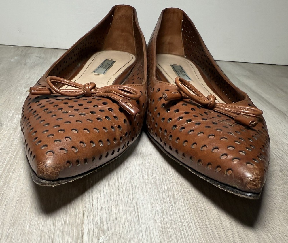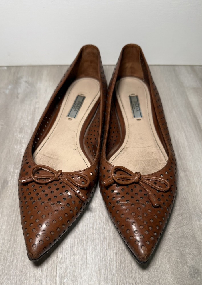 AUTH LUXURY PRADA FLATS SHOES 1F832 BROWN LEATHER US 8.5 EU 40. Condition is Pre-owned. Shipped with UPS Ground.