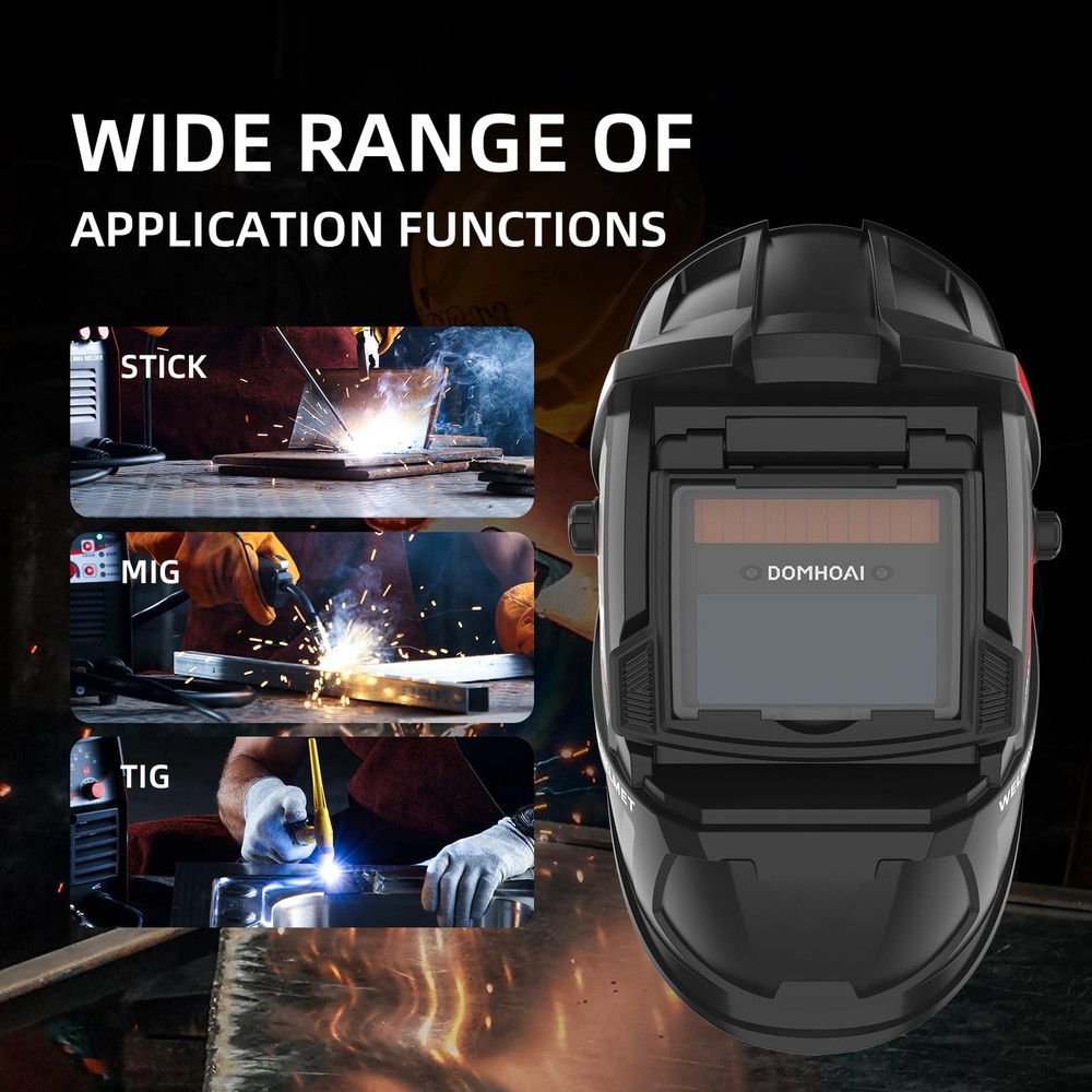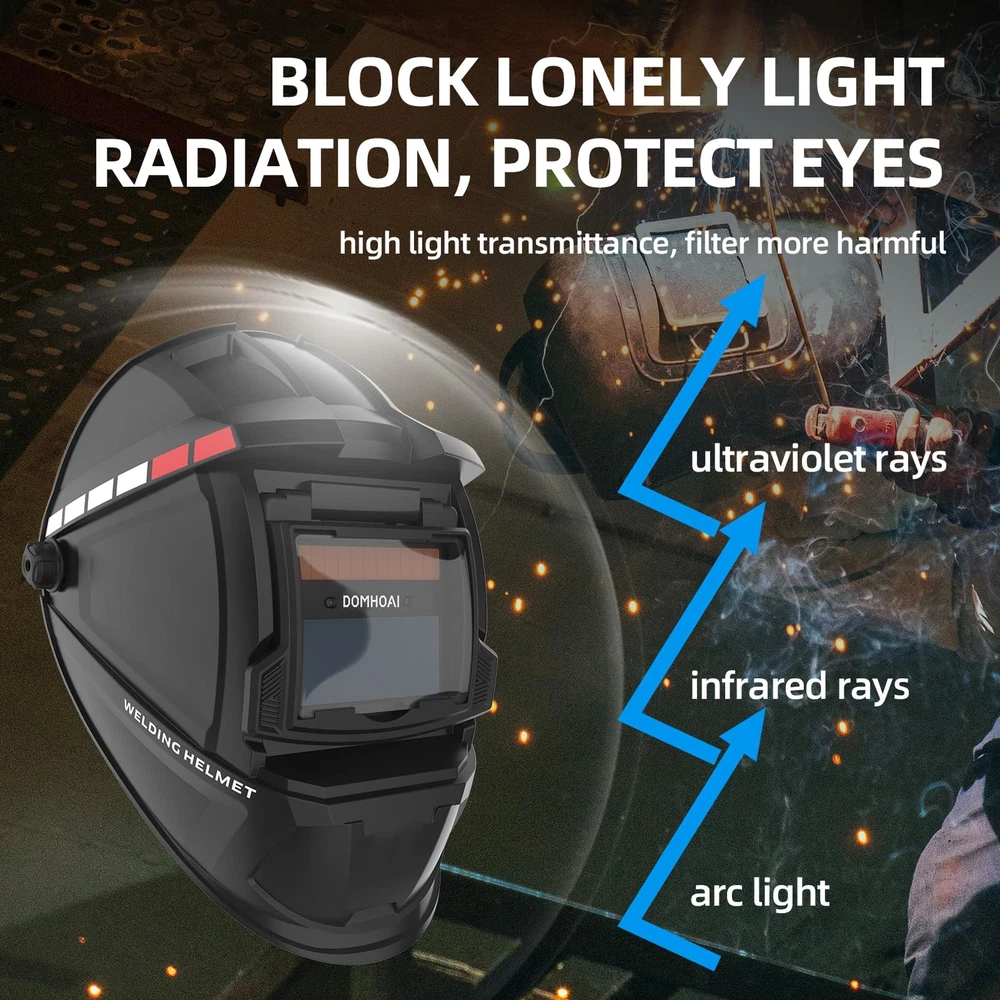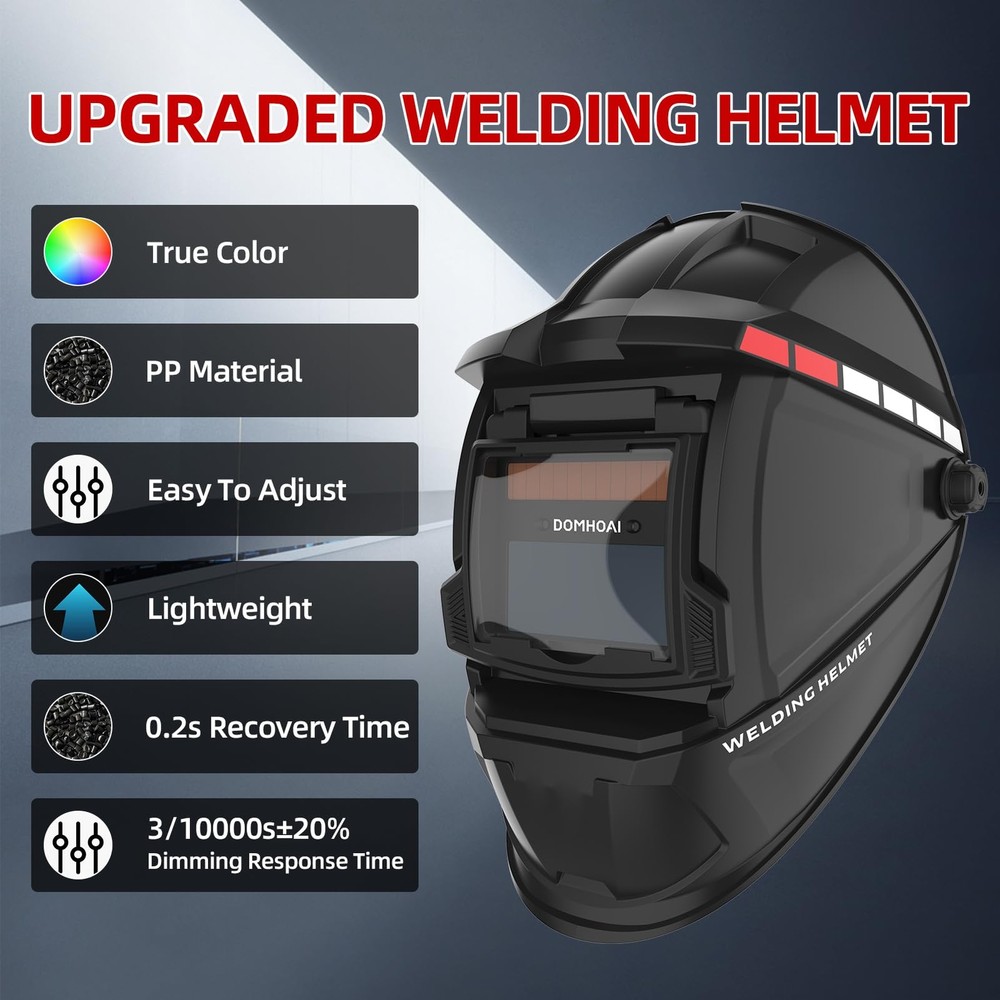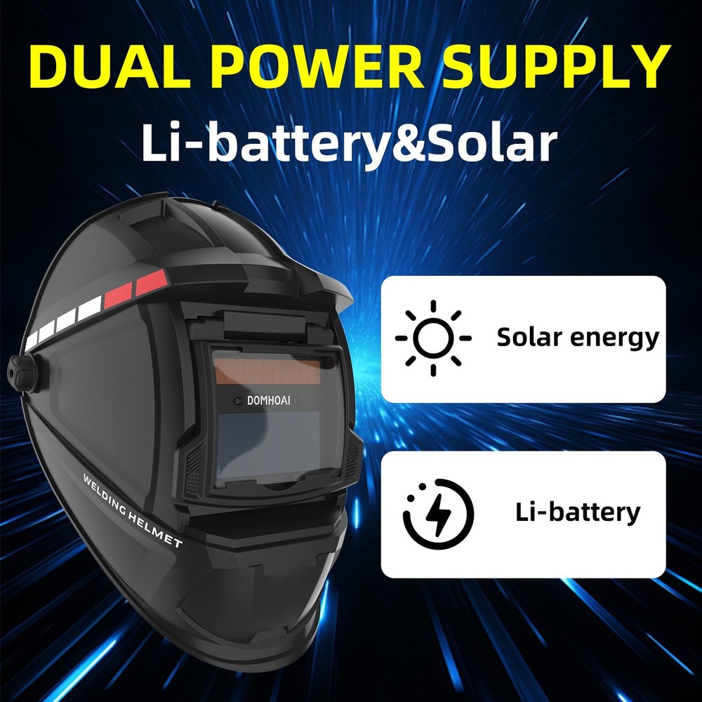 🏠 Welding Helmet Auto Darkening, True Color Solar Powered Welding Hood, 2 Arc Sensor Wide Shade 4/9-13 for TIG MMA/MIG Arc " alt="Welding Helmet Auto Darkening, True Color Solar Powered Welding Hood, 2 Arc Sensor Wide Shade 4/9-13 for TIG MMA/MIG Arc" style="max-width: 100%; height: auto; border-radius: 8px; border: 1px solid #ccc;" /> 📄 Product Description Product Parameters: Operating Temp:-5℃~55℃ Storing Temp:-20℃~70℃ Power Supply:Li-battery&Solar Optical level: 1/1/1/3 Switching time: 3/10000S±20% Rated Capacity Of Li-Battery:400mAh Replaceable Battery:No UV/IR Protection:DIN11 Helmet Material:PP Delay Time:0.2S Cartridge Size:110×90×9mm Viewing Area:3.54"×1.34" ⚙️ Features 【BETTER OPTICAL CLARITY】: The welding helmet features top 1/1/1/3 optical clarity lens with advanced true-color technology and a viewing screen 3.54”×1.34”, it will vastly improve your vision experience then you can work efficiently and with precision. 【AUTO DARKENING FILTER SWITCHES】: Welding Mask comes with high-end auto-darkening lens with 2 arc sensors, switches from light to dark in 3/10000S±20% sec, which lets you adapt to different working environments by adjusting the lens's shade and sensitivity while you are operating ARC/MIG/TIG Welding. 【DIN4/9-13 WIDE SHADE 】: Auto darkening shade range DIN4/9-13.Effectively completed the task of blocking arc and protecting eyes in welding. 【PERFECT FIT & COMFORT】: The welding helmet is well made, which can reduce the load on the cervical spine during working, so it remains comfortable even for extended use. The adjustable headgear provides you with the perfect fit, comfort and adaptability that you might need. 【PROFESSIONAL & DURABILITY】: The welding helmet was made of PP, it features shock resistance and flame resistance. The helmet meets ANSI Z87.1/ EN379 CE/ CSA Z94.3/ AN/NZS 1337.1 compliant. Power by solar cell and lithium battery supports long-lasting working time and is quite eco-friendly. 📦 What's in the Box? Product Parameters: Operating Temp:-5℃~55℃ Storing Temp:-20℃~70℃ Power Supply:Li-battery&Solar Optical level: 1/1/1/3 Switching time: 3/10000S±20% Rated Capacity Of Li-Battery:400mAh Replaceable Battery:No UV/IR Protection:DIN11 Helmet Material:PP Delay Time:0.2S Cartridge Size:110×90×9mm Viewing Area:3.54"×1.34" 📏 Dimensions 🚚 Shipping & Delivery ✔️ Fast & Free US Shipping ✔️ Orders processed within 1–2 business days ✔️ Tracking number provided 💬 Customer Satisfaction Guaranteed: We stand by the quality of our products. If you have any questions or concerns, feel free to contact us — we're here to help!