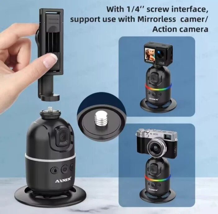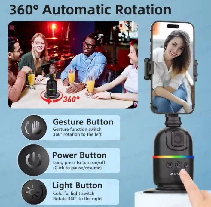 Elevate your content creation with the Axnen Auto Face Tracking Tripod Gimbal, a versatile and intelligent rotating holder designed for your mobile phone and camera. Compatible with a wide range of devices, its universal clip ensures a secure fit on any flat surface, making it ideal for vlogging, live streaming, and content photography. The sleek black design is crafted from durable ABS + PC materials, promising both style and longevity. The gimbal features a 1/2 ft USB cable for convenient power supply and comes with a base that allows for easy adjustment and perfect angle setting. Bluetooth connectivity ensures seamless operation, while the holder's design promises stability and convenience. The package includes the tracking gimbal, base, phone holder, USB cable, manual user, and a color box, making it a comprehensive solution for your mobile phone stabilization needs.