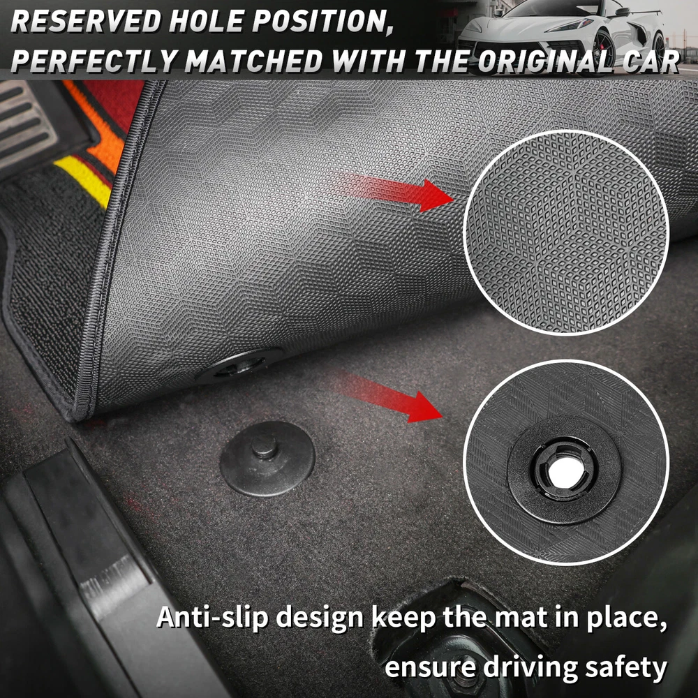 Auto Floor Mats Tricolor Carpet Fit for Corvette C8 Stingray Coupe 2020-2024 Features 【Fitment】These floor pads have been specially designed and cut to fit for Corvette C8 Coupe 2020, 2021, 2022, 2023, 2024, and are easy to install. 【Material】The mat is meticulously crafted from high-strength polyester filament, featuring a sophisticated anti-slip texture on its underside to ensure a steadfast installation within your vehicle. The harmonious fusion of three striped colors not only accentuates the aesthetic allure of your car interior but also adds a captivating charm, transforming it into a visual delight. 【Function】Whether you're embarking on a starlit camping adventure, or exploring the rugged terrain off-road, these mats serve as a vigilant guardian, effectively shielding your car floor from the soil, sand, rainwater, snowflakes, and dust clinging to your shoe soles. 【Features】Cleaning these mats is a hassle-free experience – simply disassemble them and rinse with water to swiftly eliminate any accidental spills, liquids, debris, or stains. 【Installation】The carpet is easy to install and remove, perfectly matching the original car. Just replace it directly. No modifications are required. Specification Condition: New Colour: Black Material: High-Strength Polyester Filament Fitment For Corvette C8 Coupe 2020-2024 Package Included 2X Floor Mats Declaration ⭐ This item is not a licensed Honda/Yamaha/Suzuki/Polaris/Can Am/Kawasaki/Arctic Cat/Jeep/Kymco/John Deere Gator/Bobcat/Mercedes Benz/BMW/Porsche/Toyota/Dodge/Harley Davidson/ product . ⭐ We do not claim ownership and have no affiliation with above-mentioned brands, copyrights and trademarks belong to the respective owners. ⭐ Unless specifically identified as such, our use of third party trademarks does not indicate any relationship, sponsorship, or endorsement between us and above-mentioned brands. ⭐ Any references by us (or company name) (or the seller) to third party trademarks is to identify the corresponding third party's goods and shall be considered nominative fair use under the trademark law. Payment ⭐ We accept credit, debit,discover Visa and PayPal,among other locally accepted forms of payment. ⭐ Please pay as soon as possible after odering , as that we can ship your item to you sooner! ⭐ Refund will be issue back to the account which paid from,please be know that. Delivery details ⭐ We offer FREE shipping on all orders!And offer world wide Shipping . ⭐ We ship within Three business days of payment, usually sooner .(work off on weekend and Holidays). ⭐ Delivery is typically within 8-21 days,the delivery date varies by shipping destinations, and may take a little longer during holiday peak season or encounter force majeure. Returns Accepted ⭐ This product comes with 30-day returns or replacment . ⭐ If the item is be damaged, defective, or not as described in the listing, We will provide you with a replacement or a full refund. ⭐ Any product you return must be in the same condition you received it and in the original packaging. Please keep the receipt. Quality Assurance ⭐ If you are satisfied with our item,could you kindly give us 5 stars feedback?Thanks a lot. ⭐ If there are any problems when you received the package, please feel free to message us, we will definitely give you a satisfying solution , please don't leave neutral or negative feedback without any communication.Thank you for your cooperation! Contact US ⭐ We are manufactuer ,the warehouse was located in US/China ,DO NOT worry about the shipping time. ⭐ Customer satisfaction is very important to us. ⭐ If you meet any question,Please do not hesitate to contact us via eBay message,we will reply you ASAP. ⭐ Our Working Time: 8 pm - 5 am(From Monday to Saturday,Not working on statutory holidays) . QUALITY AUTO PARTS