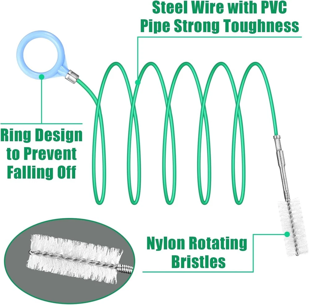 Auto Sunroof Drain Cleaning Tool,118Inch Long Pipe Cleaner for Car,Flexible Tube Cleaning Brush with 2Pcs 7.9inch Cleaning Brush Skinny Pipe Drain Dredge Cleaning Tool for Car Sunroof Wiper Drain Hole Description: Long Pipe Cleaner for Car:The total length of the Long Pipe Cleaner is 118 "(300cm),Diameter 10mm.Practical design can be used to clean the narrow pipes that are difficult to reach. It is very flexible and can be bent.The package comes with 2 x 20cm cleaning brushes for your convenience. Dredge Tool:The pipeline cleaning brush on the other end is made of stainless steel and durable nylon rotating bristles.Soft and high toughness,it gently brushes away deposits without damaging or scratching the soft rubber skylight hose,can be reused for a long term. Tail Pull Ring Design:Circular ring design prevents disengagement and makes stretching and cleaning more convenient. Widely Applicable:The skylight drainage cleaning tool can be used to clean the car sunroofs drains, door drain holes, gas tank drain holes, refrigerator drainage pipe, fish tank, filter system, decorative parts, glass hose/pipe and water pump accessories, etc. 24-Hour Service:Dead branches and leaves are easy to clog the drain, long-term uncleaned will lead to sunroof leakage.Our upgraded drain brush fixes leaks and removes odors caused by clogs.If you have any questions, or encounter any problems, please contact us! Draupnir will answer your questions within 24 hours and give you the best solution!