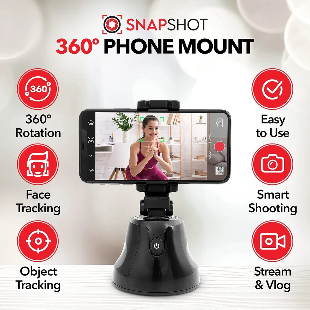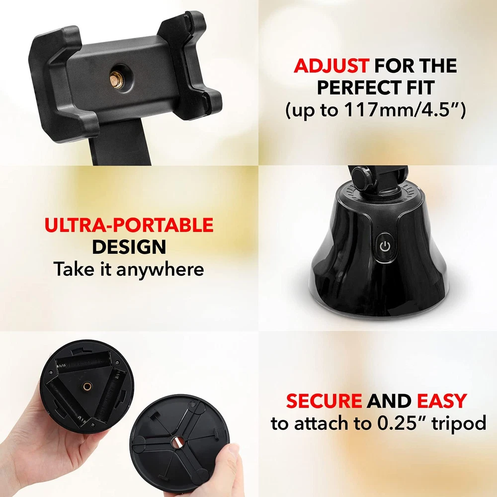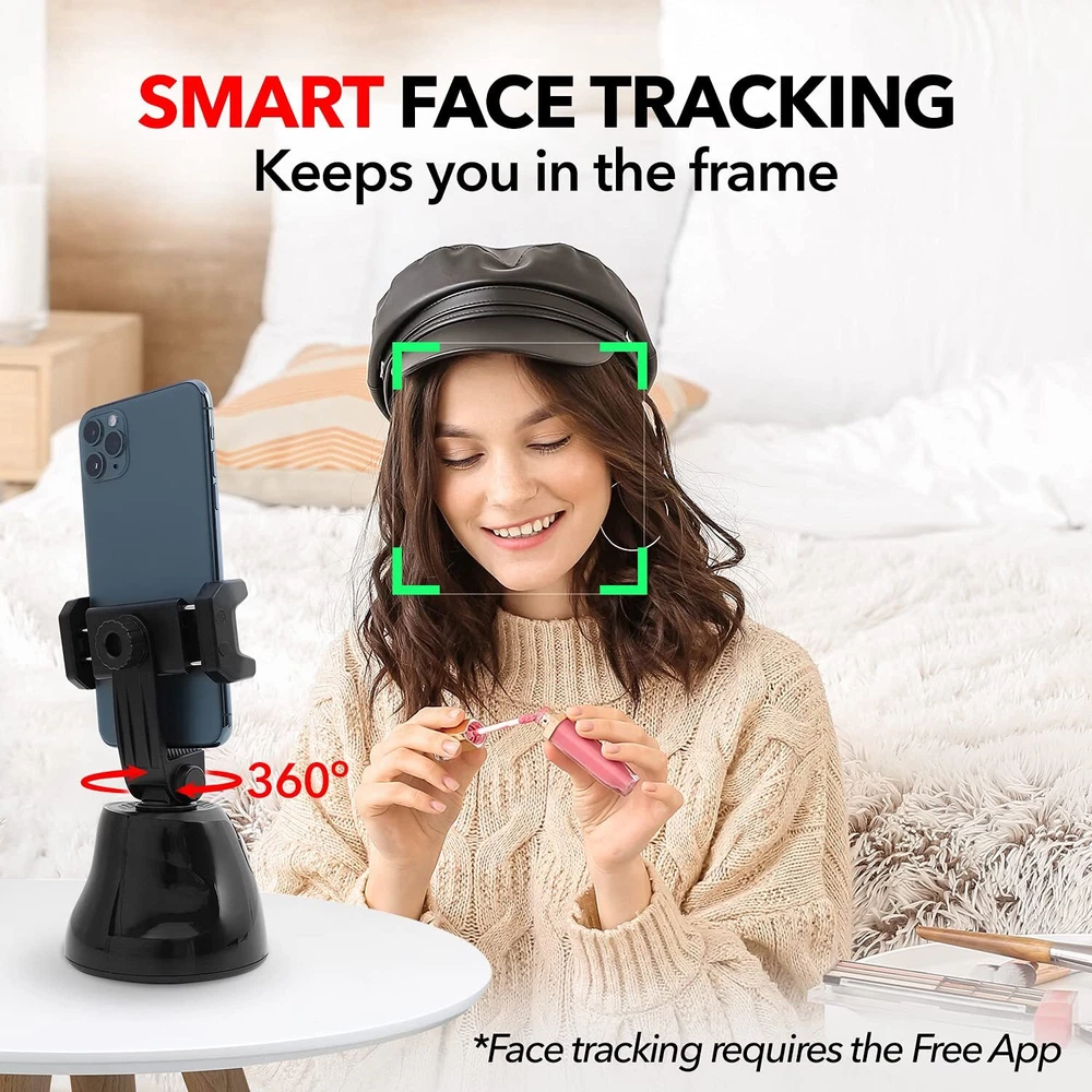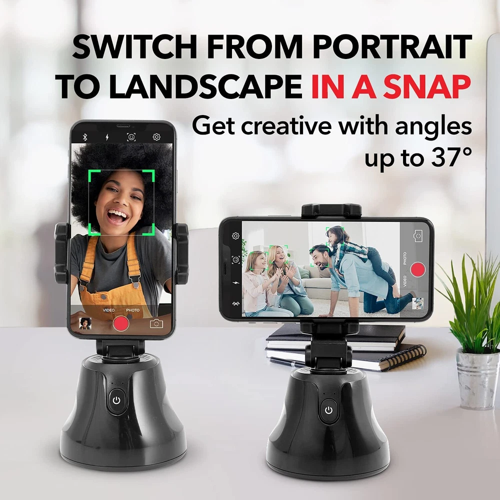 SHELFYSTAND 360 PHONE TRACKER TAKES YOUR PHOTOS AND VIDEOS TO THE NEXT LEVEL - Capture the perfect photo or live recording with the Shelfy Stand 360, equipped with a motorized motion sensored phone video tracker, manual tilting, and a Bluetooth shutter that connects to your smartphone. FACIAL TRACKING PHONE HOLDER UPGRADES YOUR CONTENT - Whether you’re going solo or snapping photos with friends, the 360 Stand auto tracking phone mount is the perfect companion to help you capture A plus content. The must-have motion tracking phone holder for TikTok and Instagram. AUTO TRACKING SMART SHOOTING HOLDER FOR EASE-OF-USE PHOTOGRAPHY - Holding your phone while you take videos and photos can be tiresome. This face tracking selfie stick and auto face tracking holder takes the effort out of taking videos and photos as it removes the need to hold your phone and guarantees a smooth, quality recording. PHONE HOLDER WITH SMART TRACKING TECHNOLOGY - This 360 tracking phone holder grips your phone firmly and uses 360 motion tracker phone technology to smoothly take recordings and photos. Never worry about shaky video recordings or blurry photos ever again with the auto tracking phone stand. EASY TO SET UP 360 SELFIE STAND - Simply install the autoface tracking phone holder app on your phone, turn on the auto tracking smart phone holder, and activate Bluetooth! Once the Apai Genie app is launched, follow the steps and choose your desired tracking mode. PORTABLE SMART TRACKING PHONE HOLDER - This 360 face tracking mount is ultra-portable so you can take it with you everywhere you go. Pop the 360 auto tracking phone holder in your purse or bag and make unbeatable content on the go! AUTOMATIC TRACKING TRIPOD WITH 360° AUTO-ROTATION - With 360° auto-rotation, the selfie stand lets you effortlessly achieve your desired angle for cool photos and videos. The motion tracking tripod tracks you so you're always at center focus. 3-SECOND COUNTDOWN TRACKING MOUNT - The portable phone mount face tracking stand's rotation auto face/body track mode has a 3-second countdown before it automatically snaps a photo, giving you plenty of time to strike the perfect pose. Perfect for taking multiple photos in a single sitting. 360 FACE TRACKING PHONE HOLDER GRIPS YOUR PHONE SECURELY - Featuring an auto-tension phone grip, this smart face tracking phone holder keeps your phone secure, no matter how big or small it is. Auto tracking tripod holds devices up to 117mm (4.5 inches) wide. TRACKING CELL PHONE HOLDER COMPATIBLE WITH TRIPOD - The motion tracker phone holder comes with a built-in camera tripod mount (standard 1/4” thread) that allows you to mount it to a tripod to extend height for a more professional touch.