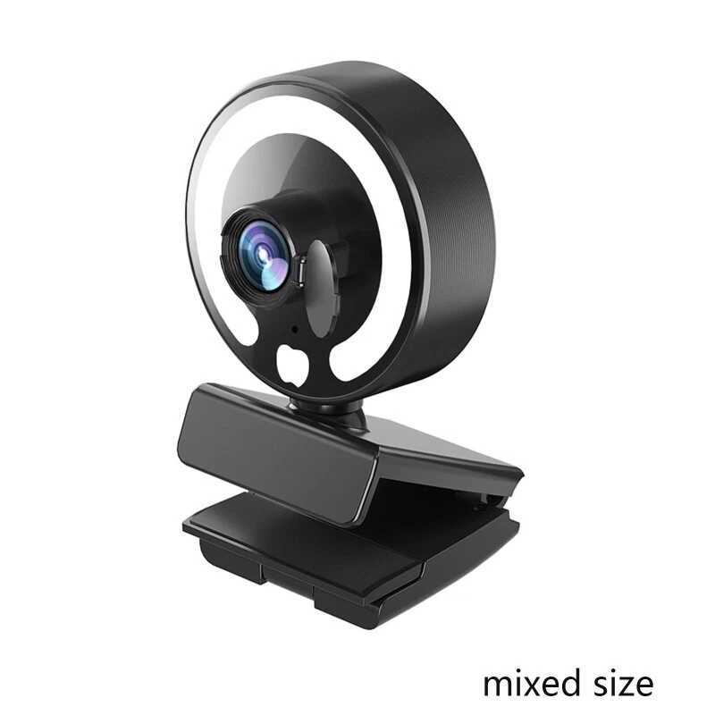Features: brand new and high quality 1080p clear webcam,It is the best choice for live video, conferences,online teaching and so on. Intergrated ring light offers 3 different lightness for choice. You can easily get suitable brightness for touch control in dark enviroment and without the need to go into software settings. Multifunctional base, can be placed on the desktop, fixed above the screen, place on a tripod. for multiple operating systems, and can be used with almost all video meeting software.. This webcam features CMOS with up to 1080p resolution at 45FPS. With autofocus function and amazing able to ensure your videos are for always for sharp and Works with USB no additional required. Ready to use in or less with any compatible device. Specifications: Lens: High Lens Type:CMOS pixel: 10 million Frame Rate: 45FPS Type: Plug and for play Type: USB3.0 View 360° Rotate Optional Type: 4K / 2K / 1K Microphone: Built-in microphone Material:ABS Cable Length: approx1.5 meters/59in Support Equipment: Support mainstream computers such as for XP, Win7, Win8, Win10, MacOS, Linux and other operating systems Package Includes: 1x 1080P Auto for Focus Webcam note: Due to the problems of lighting effects and shooting angles, there will tolerances in the product, please understand. Please allow 0-1cm error due to the manual measurment.