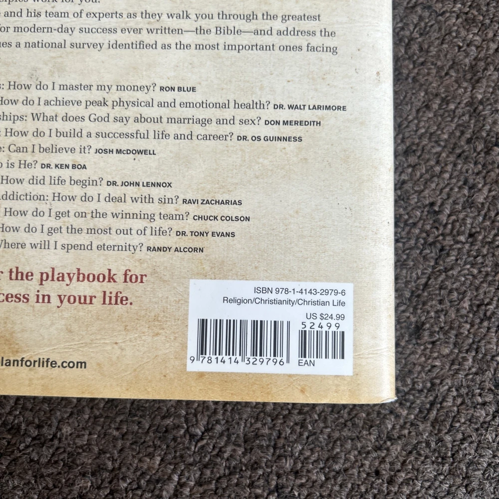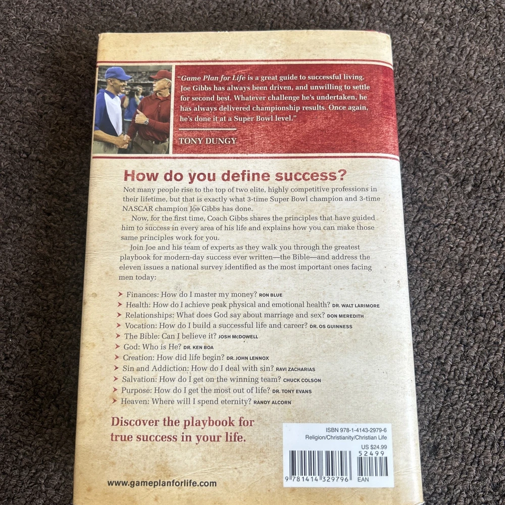 Item Width:6 inLC Classification Number:BV4528.2.G53 2009Author:Joe GibbsLanguage:EnglishAs told to:Jenkins, Jerry B.Book Title:Game Plan for Life : Your Personal PlayBook for SuccessLCCN:2009-013139Format:HardcoverItem Length:9 inSigned By:Joe GibbsTopic:Christian Life / General, General, Christian Life / Men's Issues, Christian Ministry / Evangelism, Personal Growth / SuccessItem Weight:16.5 OzIntended Audience:TradeCountry of Origin:United StatesEdition:First EditionPublication Year:2009Number of Pages:336 PagesPublisher:Tyndale House PublishersISBN:9781414329796ISBN-13:9781414329796gtin13:9781414329796Dewey Edition:22Genre:Religion, Self-HelpSigned:YesISBN-10:1414329792Dewey Decimal:248.8/42