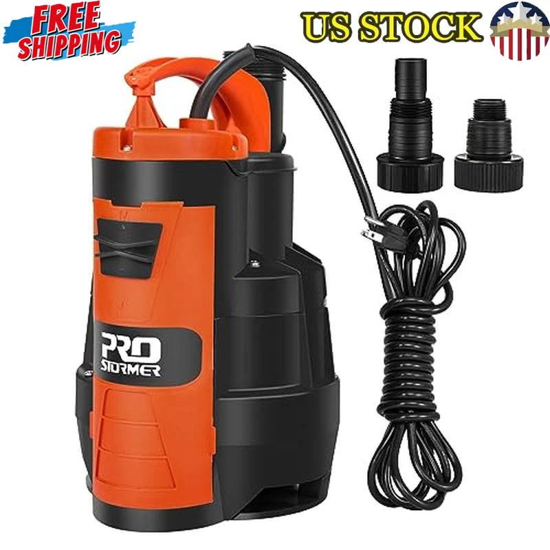 Camco RV Wheel Stop - Fits 26-inch to 30-inch Diameter Tires Light Portable 9.78 USD 10.4 USD Free shipping 6% off 48 in. 2-Light Lights 42 Watt LED Shop Light Home Garage Workshop 51.07 USD Free shipping Collector Vinyl Record Storage Case 33's 45's & 78's Heavy Duty Record Case 64.23 USD 68.33 USD Free shipping 6% off 100 Count 24x24 Heavy Absorbent Dog Puppy Training Potty Pads Dog Pet Cat 39.97 USD Free shipping Pro Series Bolt-On Trailer Topwind Jack 2000lb Load Capacity Metal Construction 57.33 USD 60.99 USD Free shipping 6% off Power Tool Organizer 4 Drill Holders Wall Mount Garage Storage Rack 2-Pack 28.03 USD Free shipping Folding Beach Lounge Chair Portable Lightweight Hiking Camping Chair Durable 25.46 USD Free shipping Portable Camping Chair w/ Umbrella & Matching Shoulder Bag Foldable Lightweight 40.46 USD Free shipping 44“x 60” Barbecue BBQ Gas Grill Cover Protector Waterproof Heavy Duty UV Hot 55.97 USD Free shipping Portable Outdoor Folding 6 Person Bench Camping Hiking Bench Chair Lightweight 154.98 USD 164.87 USD Free shipping 6% off 6Pack EVA Foam Floor Tiles Woodgrain Puzzle Mats Exercise Mat Interlocking Tiles 43.82 USD Free shipping Water Resistant Round Patio Table Chair Set Cover W/ Umbrella Hole 94 Inch New 94.94 USD 101.0 USD Free shipping 6% off 【1HP High Power】Prostormer Sump Pump uses 1HP power, which is more efficient than ordinary 3/4HP sump pump; Max 3500GPH rating tackles any draining job at a fraction of the time. 【Multi Outlet Sizes】3 different diameters outlets (1 inch ,1-1/4 inch, 1-1/2 inch) to adapte for different size hoses as needed according to the flow rate. The bigger the flow is, the wider the outlet should be. 【Manual Mode】Set the switch to the MANUAL positon the pump will now not automatically switch off but carry out pumping, even if theremaining water level is reached and the pump runs dry. You should cut off the power immediately to prevent the coil from getting burned. 【Automated Mode】Set the switch to the AUTO position. Once you have plugged the device into the socket, the pump will switch on automatically when the water exceeds the start-level and switch off when the stop-level hasbeen obtained.this means that the pump can be left on at all times and will keep the waterin a cellar or boat, for example, at the required level.bear in mind that this pump is notdesigned to be used continuously, it must be switched off at regular intervals. 【Sealing Structure & Durable Construction】The sump pump features a durable sealing structure and the durable thermoplastic body keeps the pump from corrosion. The higher base plate which assures the prevention of debris collection in the sump pit. You may also like Adjustable Baby Walker with Activity Station, JuneBerry 68.99 USD 73.39 USD Free shipping 6% off Outdoor Patio 4 Panel Screen Enclosure Gated Fence Plastic Privacy Screen 139.5 USD 148.4 USD Free shipping 6% off Deluxe Poker & Blackjack Table Top W/ Case Indoor Outdoor Portable Game US 72.77 USD 77.41 USD Free shipping 6% off 12" 40V Single-Stage Battery Powered Push Snow Blower driveway sidewalks patios 363.98 USD 387.21 USD Free shipping 6% off 100 Count 24x24 Heavy Absorbent Dog Puppy Training Potty Pads Dog Pet Cat 39.97 USD Free shipping 3 Tier Metal Utility Cart Multifunctional Laundry Baskets Home Kitchen Cart 54.56 USD Free shipping 144-piece Mechanics Tool Set Heavy Duty Home Garage Workshop Tools 55.96 USD Free shipping Steel 6-Tier Storage Shelf Unit Home Garage Unit Heavy Duty 600lb 153.6 USD 163.4 USD Free shipping 6% off 2-in-1 Baby Toddler Swing Baby Bedside Sleeper Activity Center Bedroom US 281.87 USD 299.86 USD Free shipping 6% off 6-Drawer Plastic Storage Cart with Organizer Top and Wheels Home Office 48.78 USD 51.89 USD Free shipping 6% off 2-in-1 Baby Stroller Wagon Indoor Outdoor Portable Toddler Stroller Foldable 210.0 USD 223.4 USD Free shipping 6% off 4 Amp 22" Corded Electric Hedge Trimmer Lightweight Outdoor Power Tools US 79.68 USD 84.77 USD Free shipping 6% off