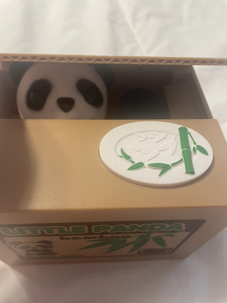 This Japanese panda bank is a must-have for any collector or lover of cute and unique items. With its automate design, it makes saving money a fun and easy experience. The piggy bank is shaped like a panda, making it a great addition to any animal-themed collection. The SPM168 brand is known for its quality products, and this panda bank is no exception. It is perfect for those who want to add a touch of fun to their home decor or for those who love to collect unique items. Whether you're a collector or just looking for a cute piggy bank, this Japanese panda bank is sure to delight. Has a few coins inside to make sure it works. Works perfectly!
