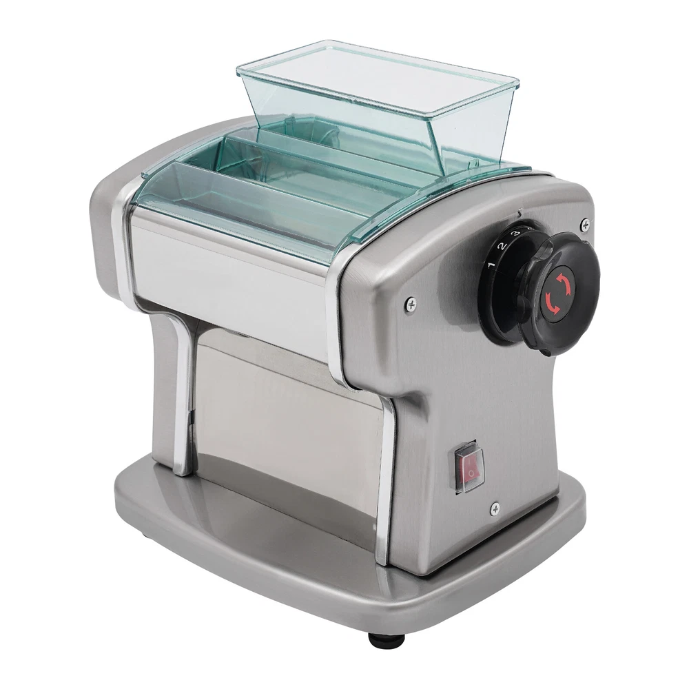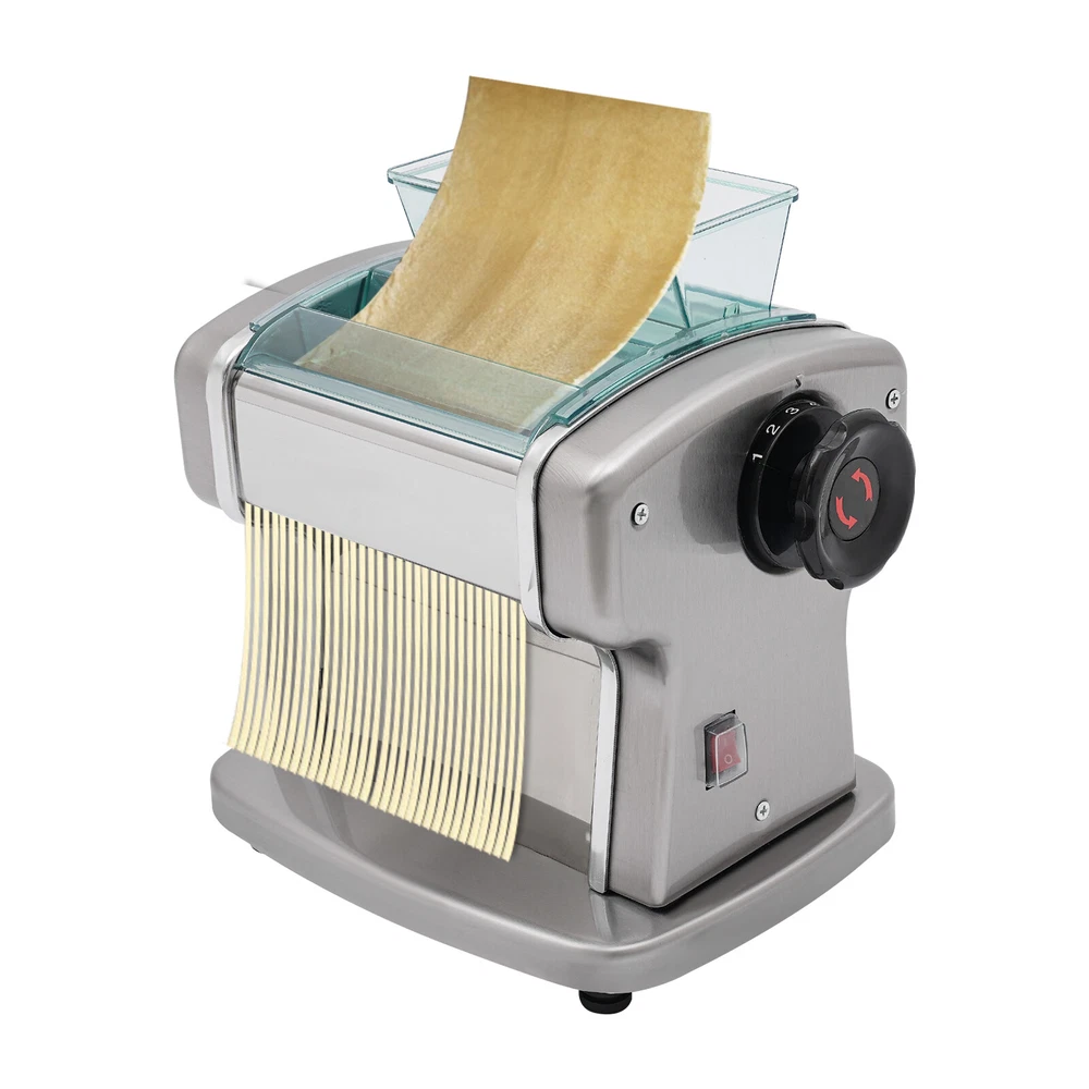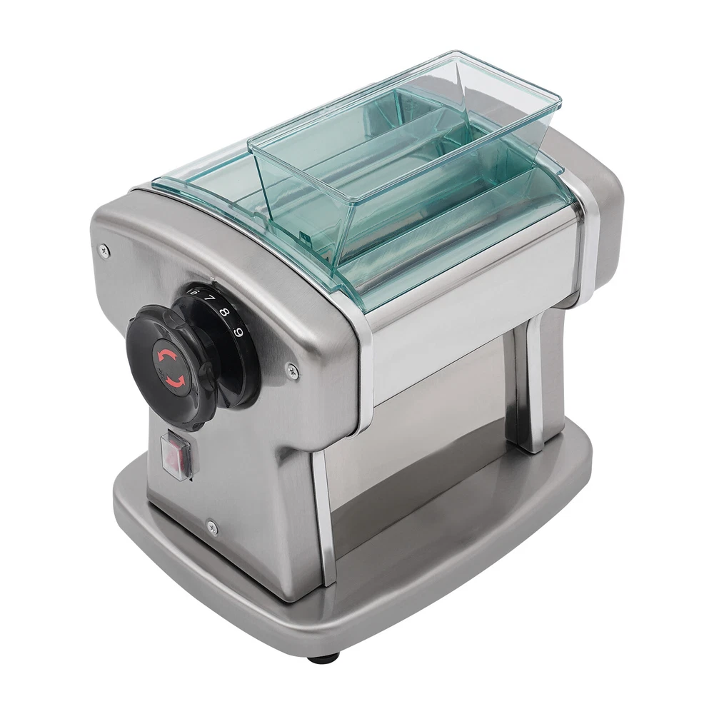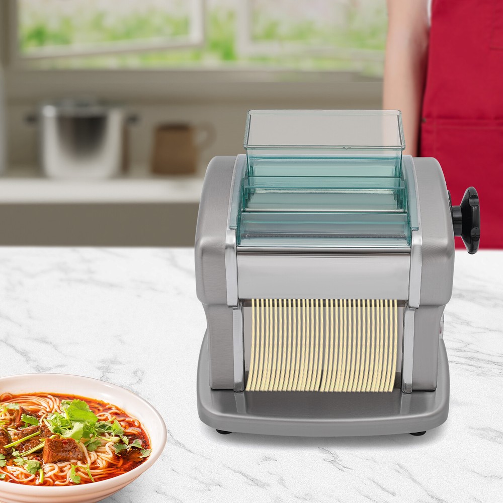 Noodle Machine Maker Tabletop Automatic Electric Noodle Making Machine 135W Welcome to our store^-^ Description A great automatic noodle machine can help you make noodles of different thicknesses and crusts of different thicknesses for you and your family to enjoy deliciously. Our product is made of high-quality stainless steel for durability, has a high power of 135W and offers 9 thickness adjustments so you can quickly make different sizes of pasta to really meet your needs. Come and bring it home! Key Features Sturdy and Durable: The item is made of high-quality 409# stainless steel, 201# stainless steel, ABS and 410# stainless steel materials with an electroplating process, making it resistant to deformation, oxidation, rust, and safe to use, so it can keep practical and beautiful without frequent replacement. High Efficiency: The 135W powerful aluminum motor and chain drive design make the product run more stably, so you can make noodles faster and more efficiently to provide delicious food for your family. Adjustable Thickness: You can use the thickness knob to cycle through 9 gears to make crusts of 0.5mm and 5mm(1st gear is the thickest while 9th gear is the thinnest), facilitating dough preparation. Thoughtful Design: The blade thickness (2 mm) is convenient for making crusts and thin noodles, giving you more options. Moreover, its press and cut knob allow you to make better different sizes of noodles. Complete Set: The product also includes a brush for oiling the dough, and molds for making dumplings as well as a tool for cutting the dough, so you don't have to buy extra, saving you time and effort. High Safety : Uniform heat dissipation holes on the bottom ensure smooth operation and increase safety during use. In addition, the ABS protective cover prevents the risk of scratches for added safety. Easy to Clean: Thanks to its smooth surface and removable shield, you can clean the product more easily with a rag or a brush ( not included ). Details Practical Brush: It helps you clean the product better and can be used to apply vegetable oil(not included) to the rotating parts for better lubrication. 4 Anti-slip Pads: The anti-slip silicone pads on the bottom of the product dampen vibration, reduce noise and ensure stability when in use. Power Switch: The one-touch power switch and the outer protective barrier are waterproof and dustproof , which are convenient for you to operate and improve the safety of use. Application It can be used in homes, breakfast stores, restaurants, noodle shops, etc. It can be used with gluten flour, spelling flour, etc. and used to make spaghetti, lasagna, spaghetti and dumplings. How to Use 1. Mix the flour(not included) and water about 4:1. 2. Cut the dough into small pieces. 3. Turn the knob to pressing mode. 4. Adjust the thickness settings. 5. Press the dough repeatedly. 6. Turn the knob to cutting mode. 7. Cut noodles. Specifications Color: Silver Material: 409# Stainless Steel, 201# Stainless Steel, 410# Stainless Steel, ABS Process: Electroplating Assembly Required: Yes Mounting Type: Tabletop Power Source: Corded Plug Type: US Standard Motor Type: Aluminum Motor Operation Mode: Automatic Power: 135W Voltage: 110V Gears: 9 Gears Is Dishwasher Safe: No Adjustable Thickness Range: 0.5-5mm/0.02-0.2in Adapted Noodle Size: 2mm/0.08in Gross Weight: 8.5kg/18.74lbs Net Weight: 7.5kg/16.53lbs Top Width: 17.5cm/6.89in Overall Product Size: 25*20*22.5cm/9.84*7.87*8.86in Package Size: 32.3*32*27cm/12.72*12.6*10.63in Package Included 1* Automatic Noodle Machine 1* Brush 1*Dough Cutter 4*Non-slip Foot Pads All Accessories for Assembly Notes Please add some flour(not included) on both sides of the dough when pressing the dough to prevent the dough from being too sticky and attached to the machine. Please note that this product does not include items such as flour. The machine cannot be disassembled and do not clean the machine directly with water. Please use a brush and wet dishcloth to clean the machine after each use. Please store the machine in a dry place to reduce corrosion. The machine is used for pressing and cutting noodles, not for polymer clay, pizza, or bread. It can not be used for over an hour. Please check the power cord frequently to reduce leakage and injury. Please often inject a little vegetable oil (not included) into the rotating parts to ensure lubrication. Please allow the slight color difference caused by the shooting light and 1-3cm error due to manual measurement, and make sure you do not mind before you order. Payment Delivery details Terms of sales About us Contact us Payment We accept ebay payment 。 Fees such as import duties, taxes are not included in the item price or shipping costs. These charges are the buyer's responsibility. Delivery details Shipping: 2-9 working days to: USA Terms of sales We maintain high standards of excellence and strive for hundred percent customer satisfaction. Feedback is very important to us. We hope that you contact us immediately before you give neutral or negative feedback, so that we can address your concerns. It is impossible to address issues if we do not know about them! About us Your satis faction is our ultimate goal. We work hard to earn your trust and future business. Our certified technicians have tested each item before shipping. The unit comes with 1 year limited warranty on all manufacturing defects. a) If you receive a defective item, you may return it or ask for a discount. Please contact us within 14 days after you receive the package. b) What you returned must be intact and in its original packaging as re? u. Customer is responsible for shipping costs of the returned item. c) We will cover the cost of shipping back t with the shipping rate indicated in the registration page. We will send you a new unit or refund the full payment you paid. Thank you. Contact us Business Hour Business Hour: Monday To Friday: 8:30 AM to 5:00 PM (Beijing China time) Due to time zones, our reply to yo