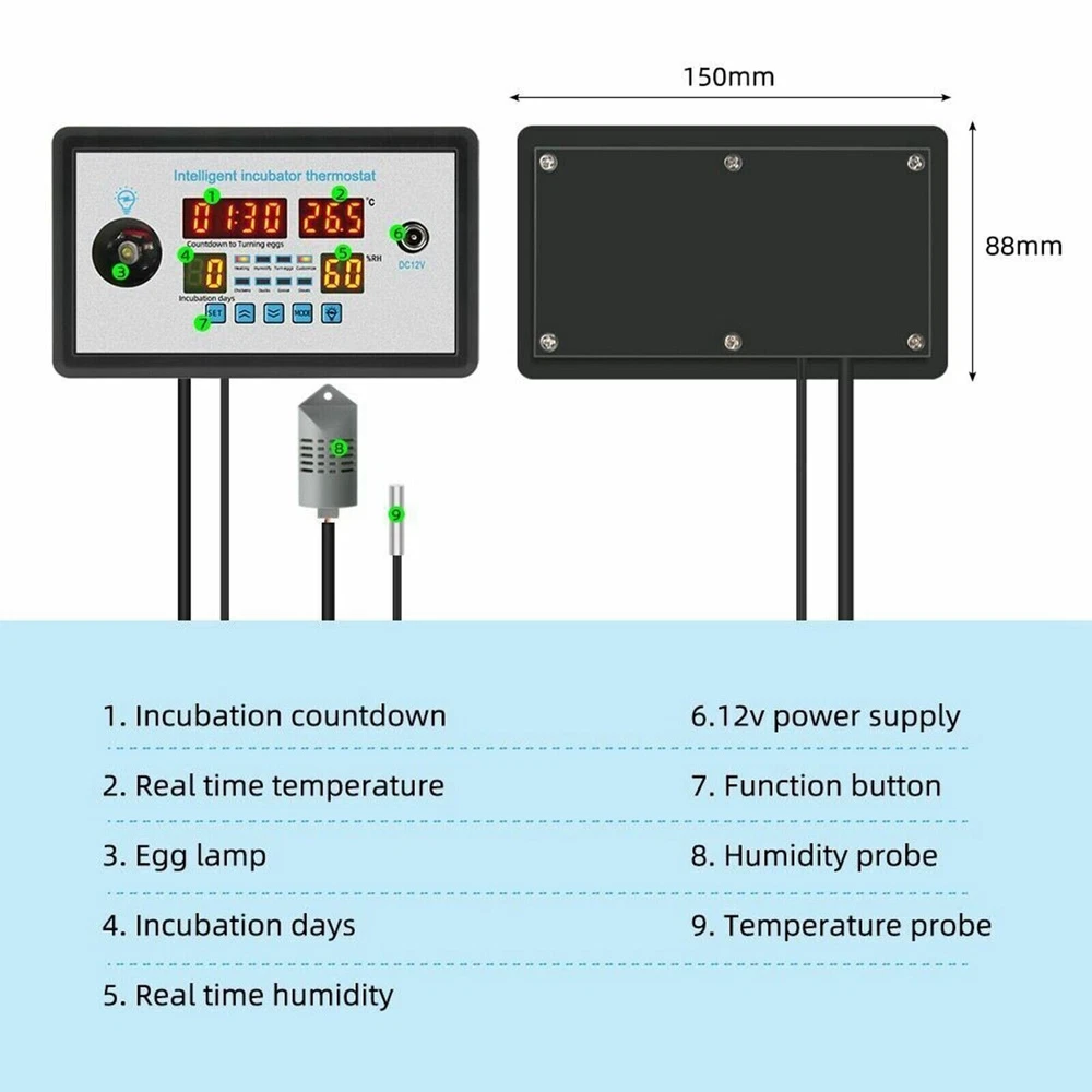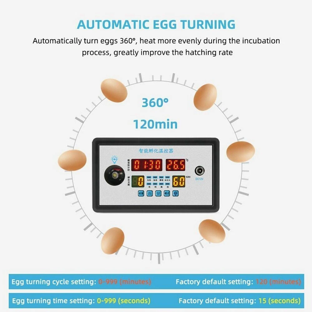 Product Description: New Arrival Features: -- This multi-purpose Thermostat Temperature Humidity Control can incubate many kinds of eggs such as chickens, ducks, geese, pigeons, etc,. -- And can be used for hatching, hatching, and brooding. -- 360 automatically turns the eggs, the heat in the incubation process is more even, and the hatching rate is greatly improved --NTC temperature probe (0-99.9°С): high precision, waterproof and dustproof, corrosion resistance. --Humidity probe (0-99%RH): adopts integrated probe, small size and stable performance, meeting the diverse needs of users. -- Automatically turn the eggs 360 automatically turn the eggs, the heat is more uniform during the incubation process, and the maintenance rate --LED cold light egg light, the hatching situation of the breeding eggs is clear at a glance, and it is more convenient to remove dead eggs and bad eggs in time Specifications: Type: Smart Thermostat Humidity: 0-99%RH Temperature: 0°C~99.9°C Power Supply:12V /220V Countdown to incubation Real-time temperature Illuminate the egg light Incubation days Real-time humidity Incubation time: Chicken: 21 days Duck: 28 days Goose: 30 days Pigeon: 18 days Crane quail: 18 days Peacock: 28 days Package Included: 1X Smart thermostat Tips: Please allow minor deviation due to manual measurement. Due to the difference between different monitors, the picture may not reflect the actual color of the item. Shipping: Shipping Estimated Delivery Time *Economy(without tracking): 11-35 business days *SpeedPAK(with tracking): 8-12 business days *EMS/DHL(with tracking): 7-10 business days, need to pay extra shipping cost For faraway region or countries (Brazil, Mexico, Peru, etc), the transit time may be longer than Overall Transit Time Frame. Notes, the delivery time may vary due to public holidays, natural disasters, customs issue and other unexpected impact, etc. Customs Declaration: Import duties, taxes and charges are not included in the item price or shipping charges. These charges are the buyer's responsibility. Please check with your country’s customs office to determine what these additional costs will be prior to biddingying. Payment: We accept PayPal ONLY currently. Payment must be made within 4 business days. If you do not have Paypal account, please register at (www.paypal.com). Return & Refund: Returns are accepted within 30 days. Please read the item description and check the pictures carefully before bidding. Return or refund is available only if item DOA or there's error in item description causing the item not fitting your need. In such cases, seller pays for all related shipping cost if any. Returns are also acceptable if buyer purchased this by mistake and item still in good condition for reselling. Buyer is responsible for all related shipping cost. Feedback: As long as you are satisfied with your purchase, please kindly leave us a 5 stars Positive Feedback , as it is very important for our store performance. If there is any problem with your order, please contact us and give us a chance to resolve your problem Before leaving us a negative feedback.