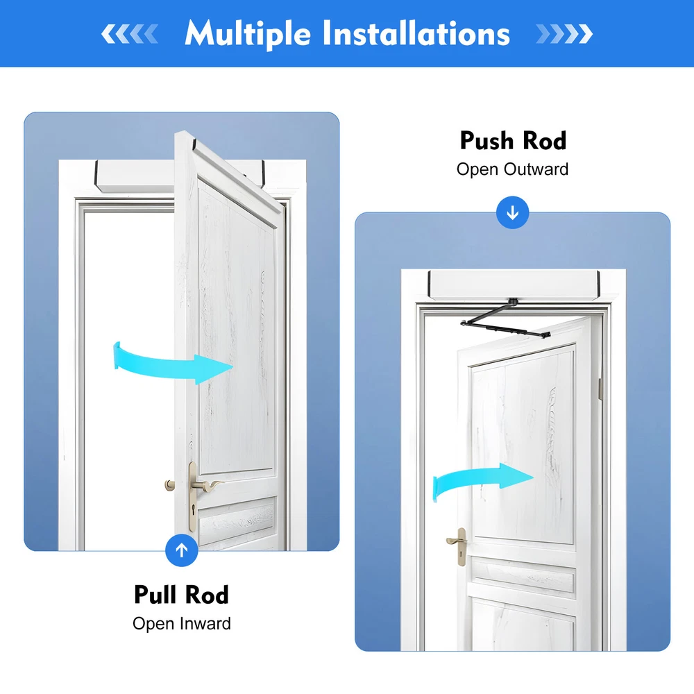 Description Many families are dealing with such problems: mischievous children like to push all the doors open; Dogs always like to wander between different rooms; The door slammed shut with a loud bang... but with our automatic swing door opener, you can enjoy the comfort brought by advanced cushioning and sliding functions! Creating a quiet atmosphere and providing a more ideal home environment is our eternal goal. Now all you need to do is take this door opener home and experience unprecedented comfort and convenience. Key Features Convenient Door Opening: After simple installation, you can use the remote control to control the opening and closing of the door within a range of 49ft. You can also use the password or swipe an ID card through the control panel to open the door. In additio Automatic Door Opener Electric Handicap Swing Door Opener + Remote Controllers Description Many families are dealing with such problems: mischievous children like to push all the doors open; Dogs always like to wander between different rooms; The door slammed shut with a loud bang... but with our automatic swing door opener, you can enjoy the comfort brought by advanced cushioning and sliding functions! Creating a quiet atmosphere and providing a more ideal home environment is our eternal goal. Now all you need to do is take this door opener home and experience unprecedented comfort and convenience. Key Features Convenient Door Opening: After simple installation, you can use the remote control to control the opening and closing of the door within a range of 49ft. You can also use the password or swipe an ID card through the control panel to open the door. In addition, installing a door opening switch is also optional, which can quickly and conveniently enter, especially for people with limited mobility or those using wheelchairs. Powerful Push & Pull: The small-sized door opener(20.27*3.15*3.74in) is suitable for doors with a maximum weight of 220 lbs and a width of 26-47.24in. It can open the door to a maximum of 120 ° and provide a closing force of about 66 lbs. Bounce upon Obstruction: It is equipped with certain safety features to ensure personal safety along its path. If an object is detected in the closed path, it will automatically reopen, providing peace of mind and preventing accidents or injuries. Easy Parameter Adjustment: The equipped programmer can adjust many parameters such as the opening time and door-holding time, allowing you to enjoy the most personalized settings that suit you best. Manual/Automatic Mode: The door opener system can operate in both automatic and manual modes. In manual mode, the pressure is very low when the door is opened, and it closes slowly, providing convenient operation for people with disabilities or pedestrians. Multiple Installations: Our package includes a push rod and a pull rod, which can be installed in different ways to accommodate doors that open inward or outward. Indoor&Outdoor Use: The aluminum alloy host cover and ABS shell allow this door opener to work in harsh environments of -4~122°F without stopping due to the temperature. Extensive External Connection: You can also connect electrical locks, magnetic locks, and other components(excluded) to this product according to your actual needs for a better experience, as this product supports a wide range of external connections. Details Low Noise Gear: The low noise gears allow quiet operation in about 55 decibels, without affecting your normal work. Wide Voltage Motor: A durable motor that uses wide voltage technology can prevent burning caused by unstable input voltage, ensuring reliable and long-lasting performance. Application This door opener has the function of automatically and manually opening and closing doors and is widely suitable for various materials doors such as wood, aluminum, and steel for commercial and residential use. It can be installed in offices, hospitals, nursing homes, banks, hotels, apartment buildings, warehouses, and other fields. Specifications Material: Aluminum Alloy, ABS Color: Silver, Black Style: Modern Assembly Required: Yes Voltage: 110~220V ±10% Power: 50W Opening Time: 3~7s/90° Hold Open Time: 1~30s Max. Door Frame Depth: 450mm/17.71in Door Width: Min. 660mm/26in / Max. 1200mm/47.24in Max. Opening Angle: 120° Max. Door Weight: 100KG/220lbs Environment Temperature: -20~50℃/-4~122°F Protection Class: IP12D Remote Control Range: 15m/49ft Closing Force: 30kg/66lbs Noise: 55DB Gross Weight: 8.3kg/18.3lbs Net Weight: 7.4kg/16.3lbs Switch Size: 8.5*8.5cm/3.34*3.34in Control Panel Size: 11.5*11.5cm/4.52*4.52in Product Size: 51.5*8*9.5cm/20.27*3.15*3.74in Package Size: 68*15*26cm/26.77*5.9*10.23in Package Included 1 x Automatic Swing Door Opener 2 x Remote Controllers 2 x Switches 1 x Pull Arm 1 x Push Arm 5 x ID Cards 1 x Control Panel 1 x Sensor 1 x English RF Card Access Manual 1 x Chinese Installation Manual 1 x Chinese Sensor Manual All Accessories for Assembly Notes We have detailed installation diagrams and instructions to help you complete the installation ideally in the shortest possible time. Please carefully read the instructions provided to improve your user experience. Please note that one set of products can only open a single door. If it is a double door, please purchase two sets. Please note that this product is not waterproof. If you need to use it outdoors, please bring your own rain cover. Please allow the slight color difference caused by the shooting light and 1-3cm error due to manual measurement, and make sure you do not mind before you order. Payment Delivery details Terms of sales About us Contact us Payment We accept ebay payment 。 Fees such as import duties, taxes are not included in the item price or shipping costs. These charges are the buyer's responsibility. Delivery details Shipping: 2-9 working days to: USA Terms of sales We maintain high standards of excellence and strive for hundred percent customer satisfaction. Feedback is very