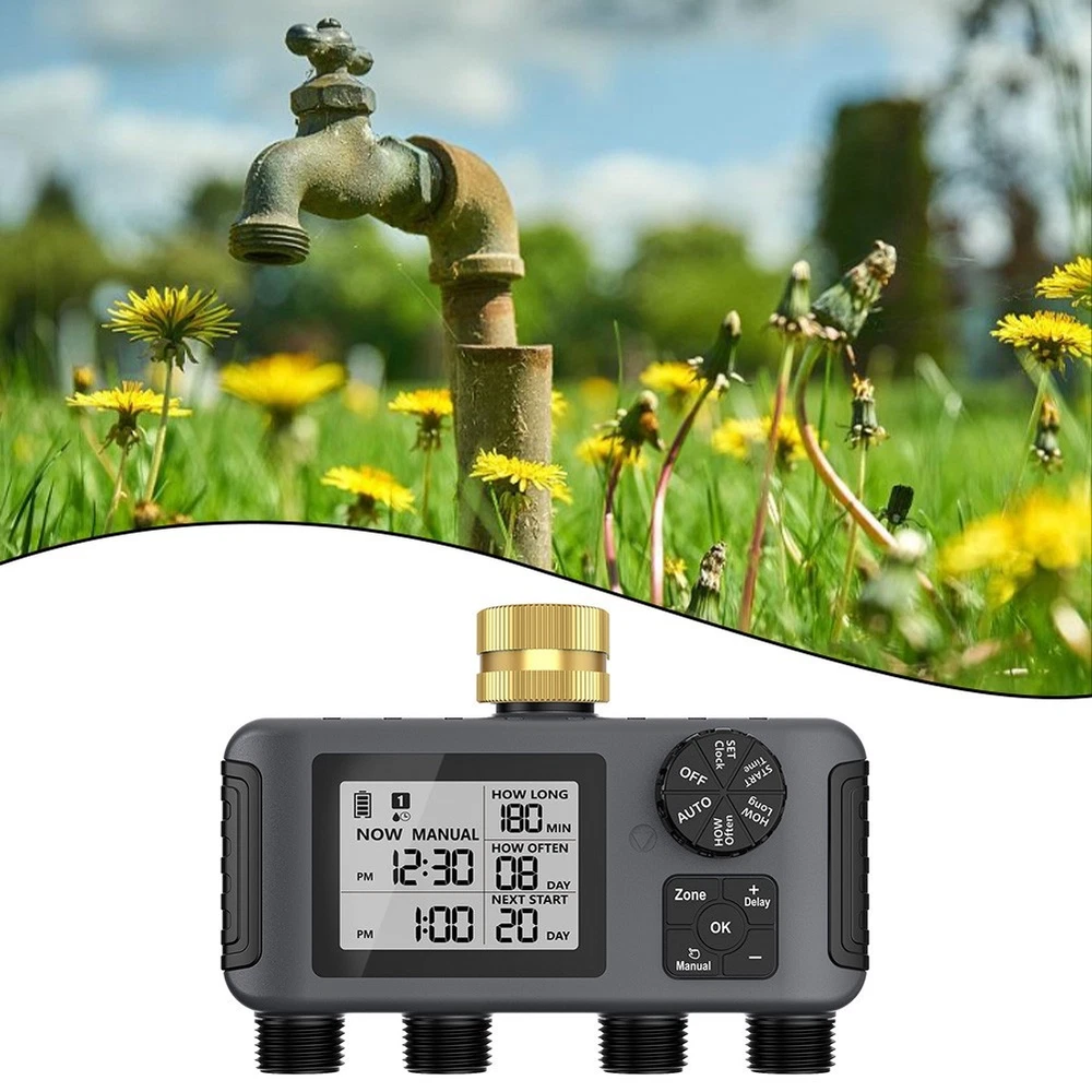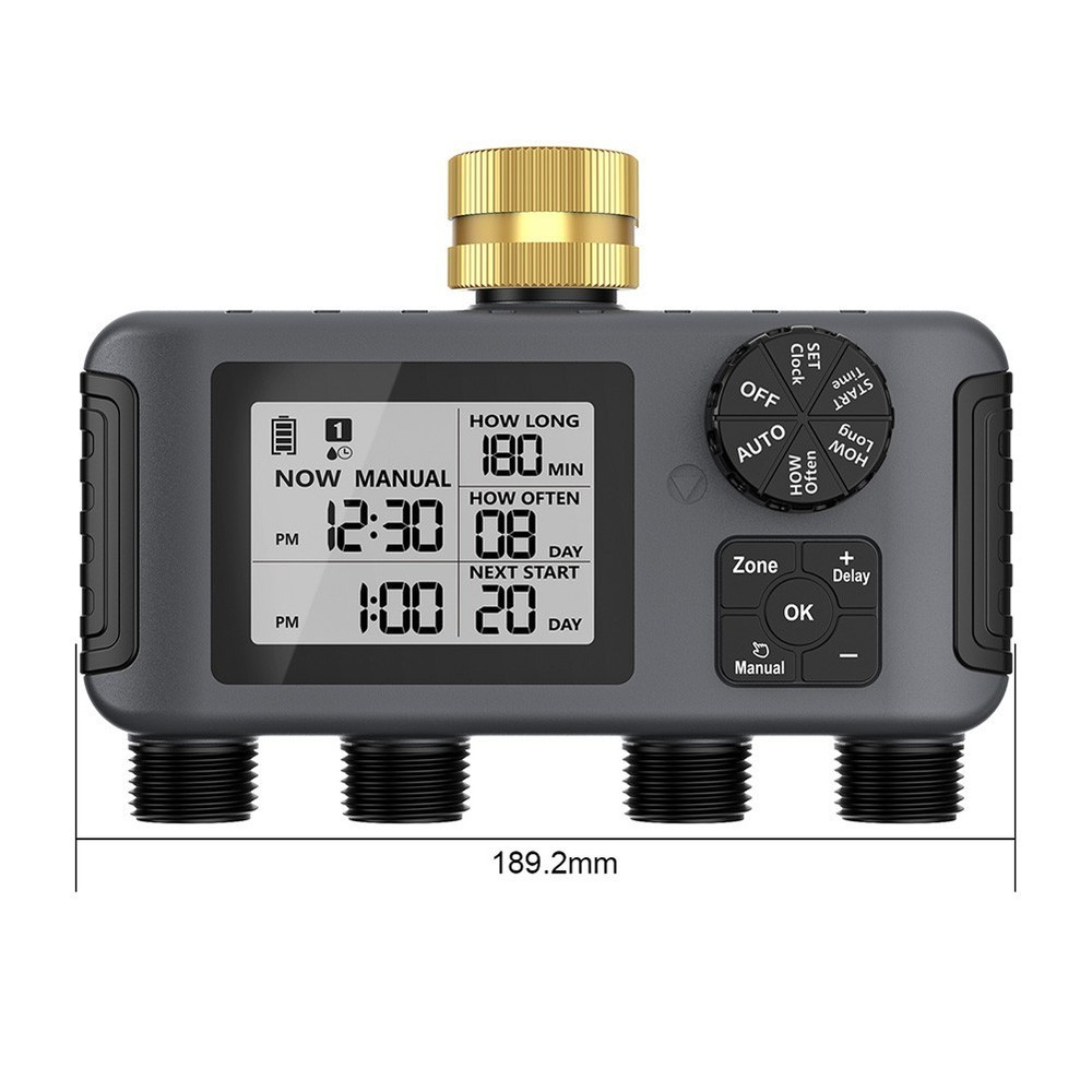 Product Description Features: *Automatic irrigation control: This device is designed to automate the garden watering process, making that your plants get the right amount of water without human intervention, saving you time and energy. *Four-valve system: This irrigation device uses a unique four-valve setting to water different areas of the garden at the same time, optimize water consumption, and promote healthy plant growth. *Timed watering plan: With a customizable timer, you can easily set a specific watering plan according to the needs of the garden, so that you can accurately control the watering time and amount and improve water use efficiency. *Related data: The voltage of the timed watering device is 3V and is powered by 2*AA batteries (shipped without batteries). The low battery for PROTECTION is 2.5V. The standby time is about 6 months, which is determined by the frequency of use and the usage scenario. Rainy day delay is 1~15 days, the watering time is 1~360 minutes, and the watering interval is 1H, 3H, 6H, 12H, 1~30D. The timed watering device has a child lock. The working temperature of the watering device is 4.5~45℃(40.1℉~113℉), the water pressure is 0.05~0.8Mpa(7.25~116psi), and the waterproof level is IPX5. *User-friendly interface: The intuitive interface makes adjustments simple and intuitive, allowing users of different experience levels to easily and confidently manage their irrigation systems. Specifications: *Product Name: T imer watering device *Material: ABS+UV resistant *Size: 189.2*81.1*132.9mm *Color: B lack *Number of Pieces: 1 Package Content: 1 timer watering device Note: 1. The real color of the item may be slightly different from the pictures shown on website caused by many factors such as brightness of your monitor and light brightness. 2. Please allow slight manual measurement deviation for the data. Payment Payment must be completed within 5 days. If you have any problems about payment, please contact us via message. Delivery details We only ship to confirmed Order addresses. Please comfirm that your Order address is in line with your shipping address. Please kindly note that the c ombined shipping is not provided because the shipping fee is calculated by weight. Also, the each additional item means exactly the the same color and size. It takes about 7 -15 working days to US; about 10-30 working days to other countries. for TRANSIT time may be a little delayed because of the bad weather and customs inspection . If you do not receive your item within 30 working days since payment finished, please contact us immediately for further assistance. Contact us We strive for 100% customer satisfaction! Positive is very important to us. If you have any questions, p lease feel to contact us via "Ask seller a question" . We will reply your email within 24 working hours.