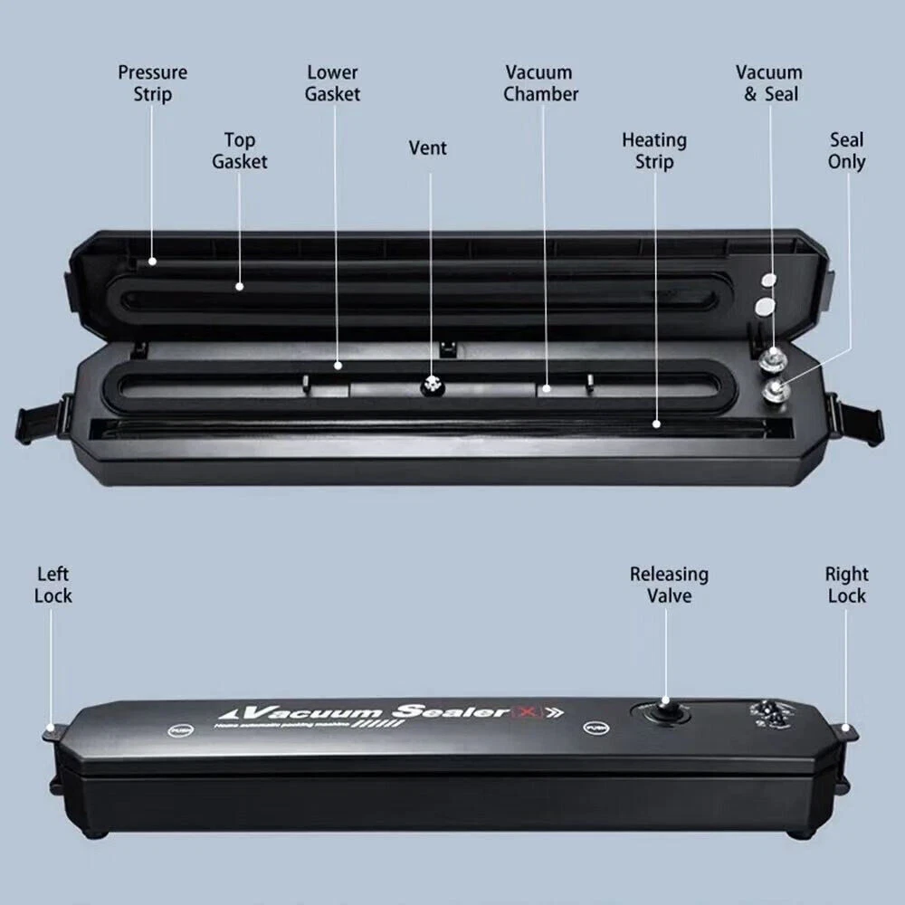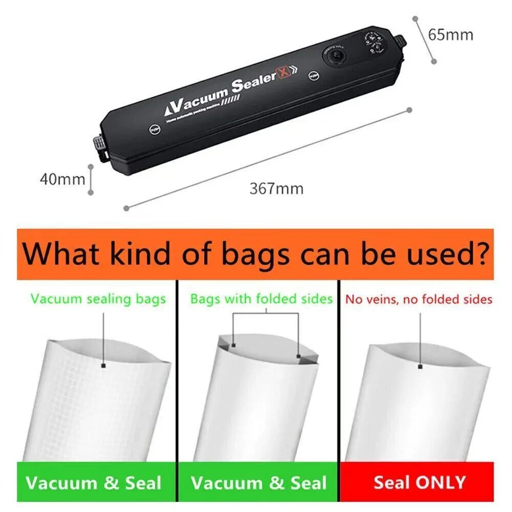 YOU MAY ALSO LIKE Commercial Vacuum Sealer Machine Seal a Meal Food Storage Saver System Automatic 29.99 USD Free shipping Vacuum Sealer Machine Food Preservation Storage Saver Automatic 🧑🍳 【Keep Food Fresh 10X Longer & Save Money】 - The vacuum sealer machine is an essential tool in any home kitchen. More and more people prefer vacuum sealer machine to store food, which will make cooking, meal prep easier, reduce food waste. Not only save your time and money, but enhance the taste of your dishes by using our vacuum sealer. 🧑🍳 【Professional Vacuum Sealer】 - Our food vacuum sealer only takes 5-8 seconds to complete the food vacuum sealing. Keeps food fresh 10X longer than normal storage methods. The perfect solution to keep food fresher and longer. Reduce your food bills and wasted leftovers with our vacuum sealer. Your favorite foods will keep for up to 3 years after sealing and freezing them. 🧑🍳 【Easy to Seal】 - Our food vacuum sealer adopts fully automatic one-button sealing machine operation, LED indicator light, hands-free design. It has constant temperature to seal dry and wet food. Dry food or for wet food. Suitable for steak, meat, seafood, shrimp, fish, fruits, vegetables, nuts, bread, jars, etc. Meet all your needs. The compact size and lightweight design are ideal for beginners, especially the elderly and children. Become a good partner in your home kitchen. 🧑🍳 【Excellent Safety & Multifunctional】 - Our food vacuum sealer suitable for maximum 9.5" width vacuum sealer bags any size less will work perfectly as well. Works with any brand sealer bags. You can lift the top cover for easy cleaning. This vacuum sealer meets applicable product safety testing standards and is built to last, keeping you and your family safe is our top priority. 🧑🍳 【What You Get】 - You will get 1 x Vacuum Sealer Machine, 1 x AC Adapter, 1 x User Manual (Depending on your menu selection). You will love this way of cooking. If you have any question about our Vacuum Sealer Machine, please contact us, we will provide you with a satisfactory solution. Specifications: Color:Black Material: ABS Sealer Max Width: 29.5cm Vacuum: 400mmHg KPA:-60kPa Power: AC 110V-220V / 50Hz / 100W Features & Tips Compact design The design of this vacuum machine is much smaller than most vacuum sealing machines on the market, does not occupy space, is compact and portable, and saves storage space for you Automatic vacuum sealing The vacuum sealer removes all the air from the bag, then uses heat to create an airtight seal, locking out moisture, air . The efficient and quick vacuum sealing keeps the food fresh. Sealer One-touch automatic vacuum sealing makes it easy to use. Simply vacuum seal your food at the press of a single button. Professional Vacuum Sealer Our food vacuum sealer only takes 5-8 seconds to complete the food vacuum sealing. Keeps food fresh 10X longer than normal storage methods. The perfect solution to keep food fresher and longer. Reduce your food bills and wasted leftovers with our vacuum sealer. Your favorite foods will keep for up to 3 years after sealing and freezing them. Design Our food vacuum sealer suitable for maximum 9.5” width vacuum sealer bags any size less will work perfectly as well. Works with any brand sealer bags. You can lift the top cover for easy cleaning. This vacuum sealer meets applicable product safety testing standards and is built to last, keeping you and your family safe is our top priority. Keep Food Fresh 10X Longer The vacuum sealer machine is an essential tool in any home kitchen. More and more people prefer vacuum sealer machine to store food, which will make cooking, meal prep easier, reduce food waste. Not only save your time and money, but enhance the taste of your dishes by using our vacuum sealer. Easy to Seal Our food vacuum sealer adopts fully automatic one-button sealing machine operation, LED indicator light, hands-free design. It has constant temperature to seal dry and wet food. Dry food or for wet food. Suitable for steak, meat, seafood, shrimp, fish, fruits, vegetables, nuts, bread, jars, etc. Meet all your needs. The compact size and lightweight design are ideal for beginners, especially the elderly and children. Become a good partner in your home kitchen. Package includes: 1 x Vacuum Sealer Machine Food Preservation Storage Saver Automatic