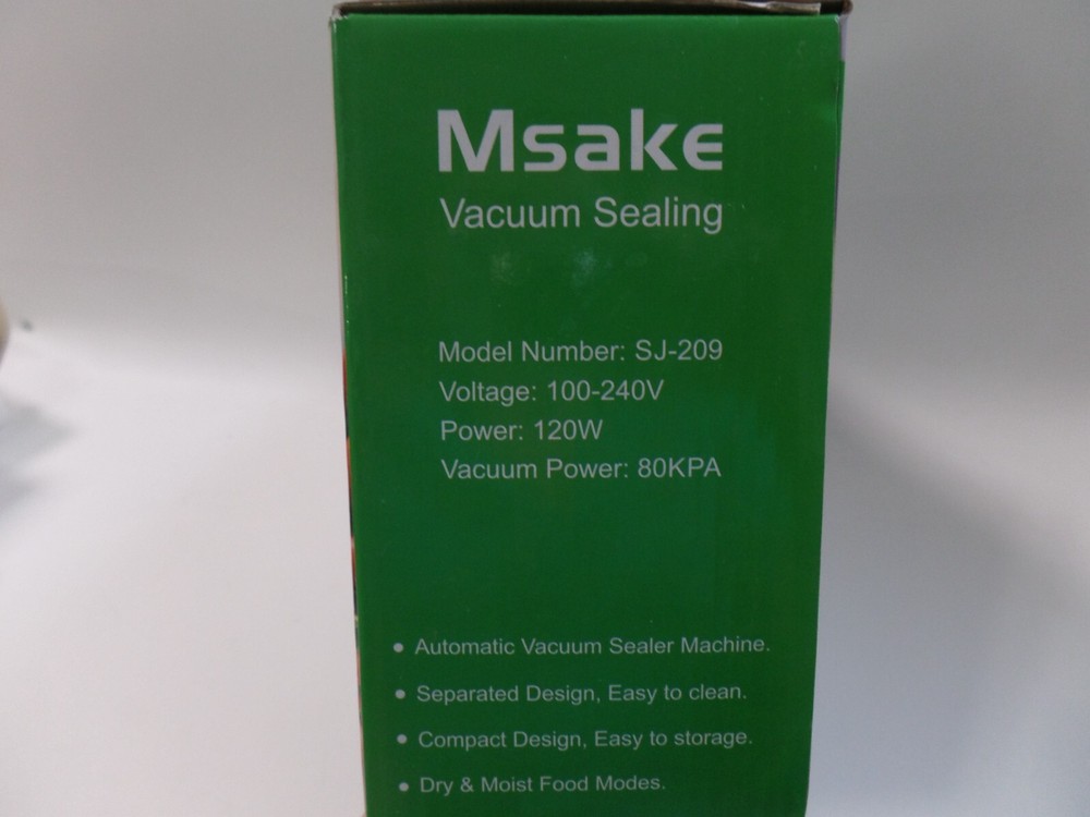 Enhance the freshness of your food with the Msake Automatic Food Vacuum Sealer SJ209, a sleek white appliance that promises to be a game-changer in your kitchen. Its electric power source ensures a consistent and effortless operation, making it a convenient addition to your daily routine. The sealer comes complete with the unit component, ensuring you have everything you need to start preserving your food immediately. Its automatic features simplify the vacuum sealing process, providing a hassle-free experience for all users. Keep your meals at their best with this innovative appliance. Please review all photos. Don't forget to look at my other listings, there are bags for sale!