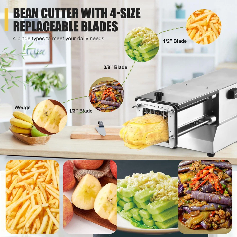 Store category Sign Up Now ! You may also like Product Description Bullet Points: Large Storage Room: With a large capacity, our electric French fry cutter is suitable for both commercial and home use. It helps you quickly cut potatoes into French fry shapes, saving time and effort. Say goodbye to tedious cutting and slicing and hello to perfectly shaped fries. Last for a Long Time: Manufactured with thick stainless steel, this Electric French Fry Cutter boasts good durability against deformation and rust. Its stainless steel shell ensures long-lasting use, making it a good and robust addition to your kitchen. Widely Applicable: Using 4 stainless steel interchangeable cutters, this Electric French Fry Cutter creates versatile 1/2", 1/3", 3/8", or wedge-shaped strips/cubes. Each cutter is replaceable and delivers extended service life, perfect for slicing potatoes and more. Easy to Use: Have crispy fries in no time with our Electric French Fry Cutter. Simply open the lid, load ingredients and press start. Easily push out fries with 1 button. Safe Usage: The electric French Fry Cutter is equipped with a secure lid made of rust-proof stainless steel. The machine is designed not to operate unless the lid is properly in place, ensuring maximum safety. Effortlessly cut a large capacity of thick fries with the Electric French Fry Cutter. The included lid ensures safety while easily pushing out fries to meet your different needs. Specification: Product size: about 6.3x8.1x19 inches/16x20.57x48.26cm Material: Stainless steel Recommended use: Vegetables Product care instructions: Hand wash only Cutter material: Stainless steel Cutter shape: Rectangular Using mode: Automatic Color: black, silver Packing List: 1* Electric Potato Machine 4* Cutters Payment Delivery details Terms of sales About us Feedback & DSRs Payment Before you palce an order, please kindly make sure that you have a paypal account. We accept PAYPAL payment only. Payment should be completed within 2 days after auction closed, or unpaid dispute will be filed for an closing auction. An unpaid case will be filled after 4 days. Delivery details We ship to your eBay address. Each package will be shipped to US by UPS Regular Parcel with tracking number. Please check your shipping address carefully before checkout, it can't be changed if order completed. All items will be shipped within 1-2 business day upon receipt of payment.Orders placed on weekend will be shipped within 3 days. If you do not receive your item in 7-10 business days.please contact us immediately for further assistance. We will be responsible for any damages or losses incurred in the shipping process. About us We maintain high standards of excellence FIVE STAR and strive for 100% customer satisfaction! Positive Feedback is very important to us. We hope that you contact us immediately Before you give us neutral or negative feedback, so that we can satisfactorily address your concerns. We promise to offer the lowest price and high quality produce. Our working time: From Monday to Friday(9:30 am to 18:00pm), we don't working on holidays ,hope you can understand and know that , thank you. Please always talk to us via ebay Message. We appreciate your business and look forward to growing our e-Bay sales with satisfied customers. Feedback Contact us If you have any questions, please feel free to contact with us by ebay Message during our business hours ( 9:30a.m. to 5:30 p.m.), or email us through eBay, we will try our best to help you to resolve it. For any presale or after-sale questions,please do feel free to email us! Due to the time difference, each email will be replied within 1 working day,and weekend will be delayed a bit. Feedback
