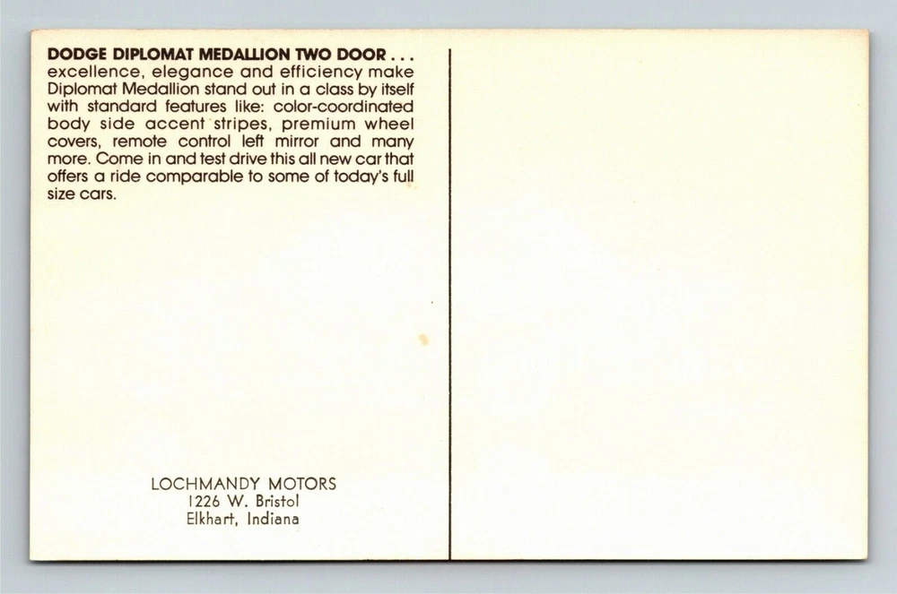 Automobile-Dodge Diplomat Medallion, 2-Door, Red Hardtop Vintage Postcard
