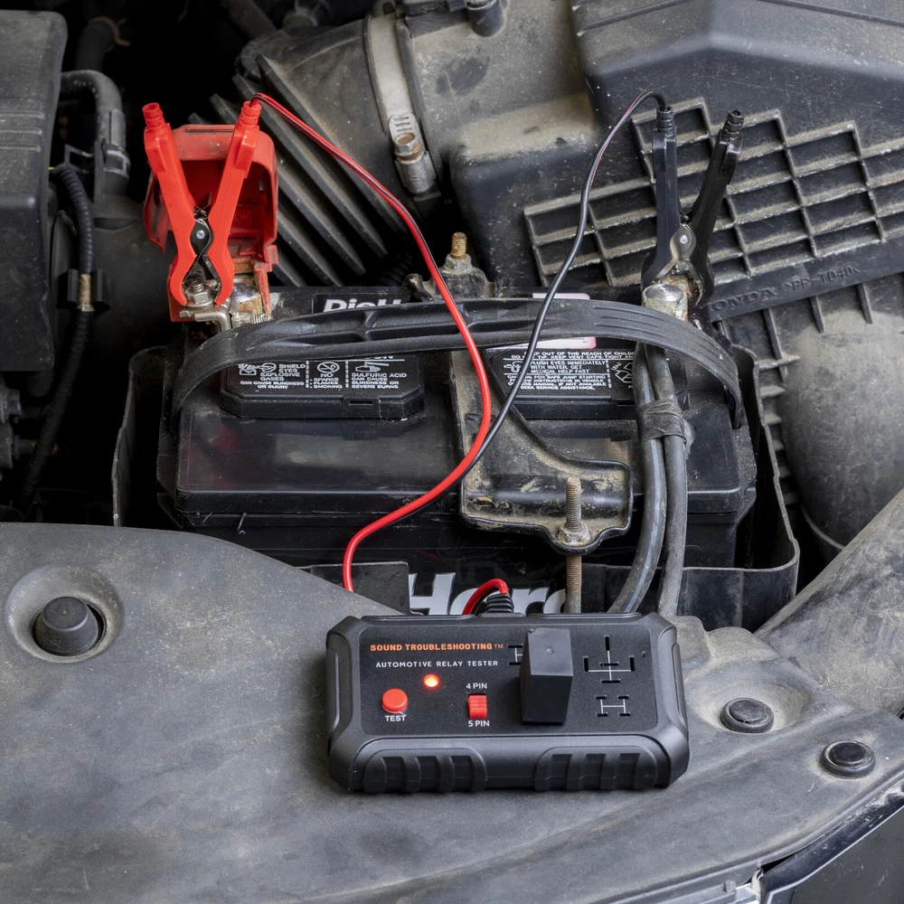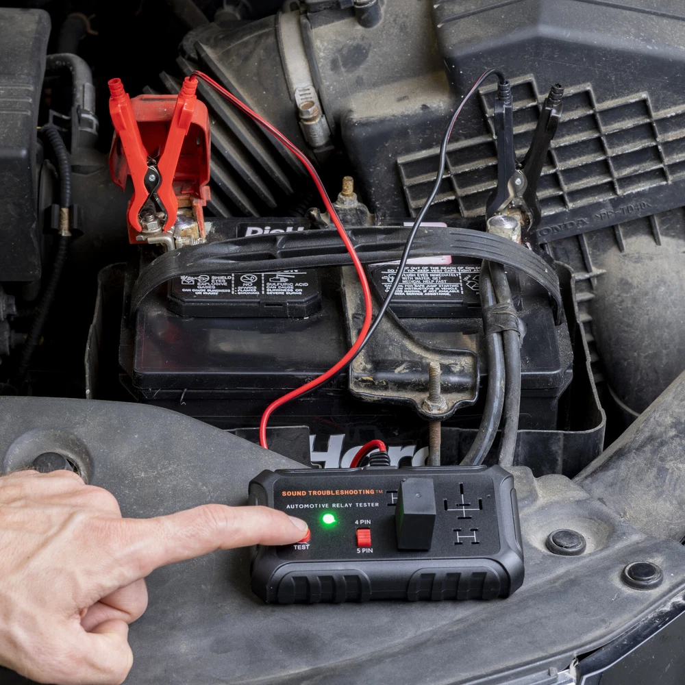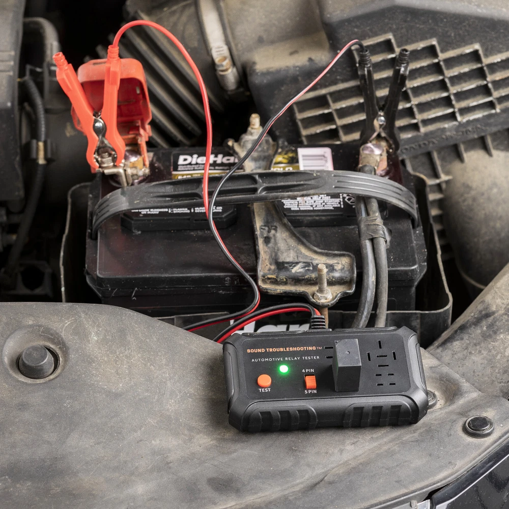 Introducing the Sound Troubleshooting™ Automotive Relay Tester 12V Auto Relay Diagnostic Tool Small Handheld DIY Car Tool - Easy To Use - The tester will automatically detect the pin position, the release time of the action, and the consistency of the relay in each test phase. If the tester lights up the green LED light, the relay is normal; if the red LED light is on, the relay is abnormal. - To Operate - First, clip the alligator clip of the tester to the car battery, the black clip on the negative pole, and the red clip on the positive pole. When the red LED light is on, it means the tester can start the test. Check the relay before testing. Select the appropriate socket according to the pins, insert the relay into sockets, press the "Test" button, and the tester will automatically detect the pin position of the unknown relay. -Fitment - Suitable for most general-purpose automotive relays on the market. When testing, it needs to be connected to the car's 11V-15V battery. The car battery must be a 12V battery, and the battery voltage must be between 11V-15V; 2. The applicable coil resistance is preferably above 20 ohms. - Compact - Our automotive Relay tester is small and easy to carry around for on-the-go jobs or for easy storage. Its compact design allows easy use no matter where you are. -Simple and Quick - With our patented design this relay tester will give you the results you need quickly and easily.